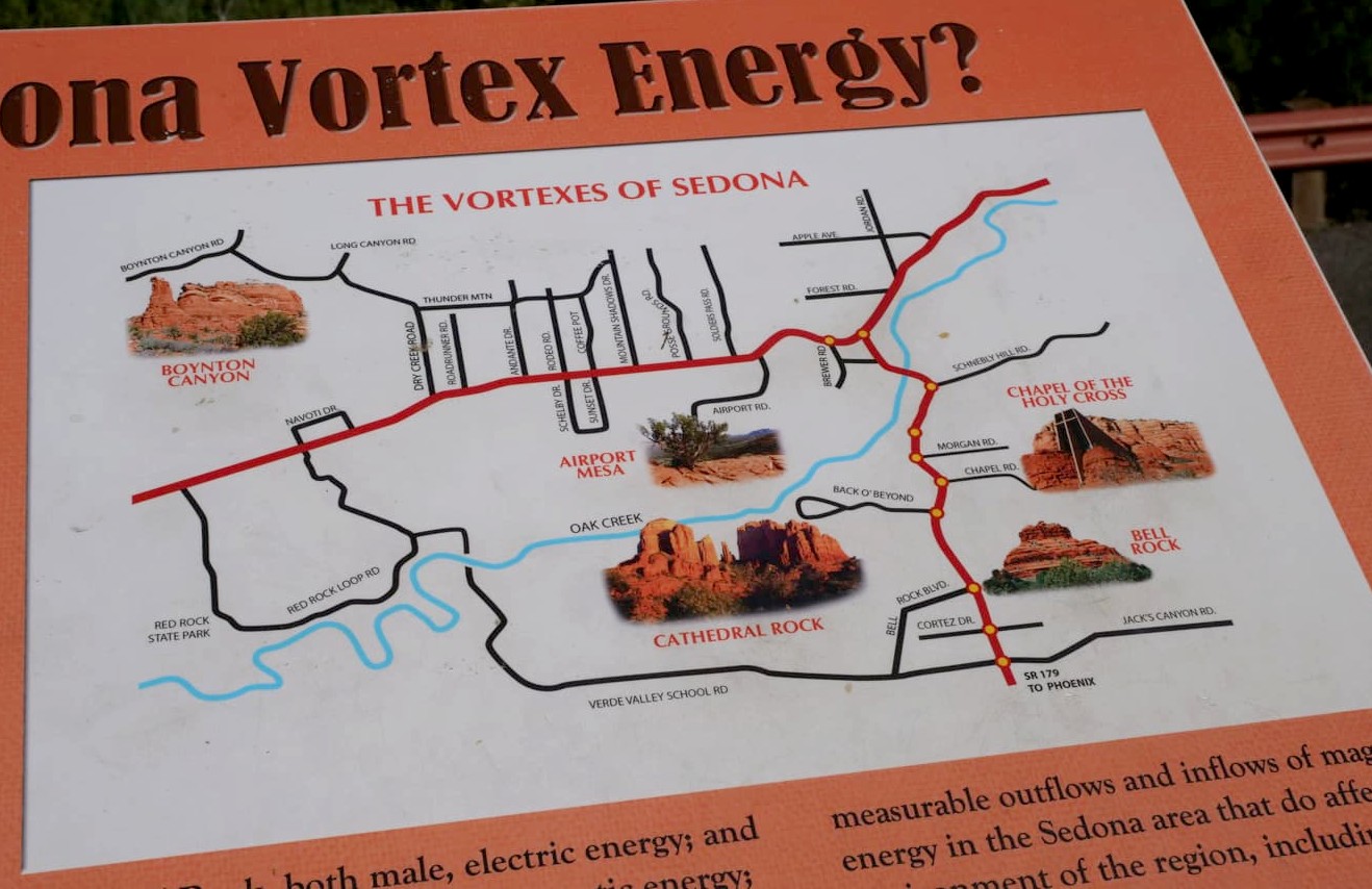 Les vortex, ce sont des endroits où de fortes concentrations d’énergie sortiraient de la terre, énergie que de nombreuses personnes disent ressentir en venant à Sedona. Pour les « croyants », ces endroits auraient des vertus de guérison, et seraient des endroits propices pour des pratiques spirituelles telles que la méditation, la prière ou le yoga. De nombreux « tours spirituels » sont organisés autour de ses vortex, avec à la clé plus d’explications sur ce phénomène il est vrai assez difficile à expliquer.