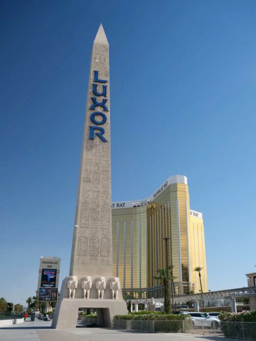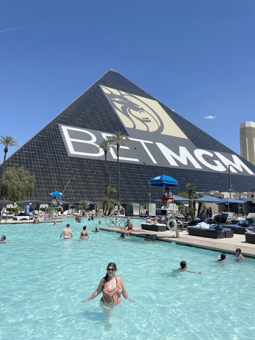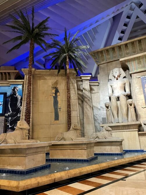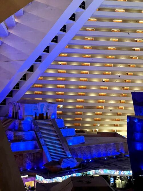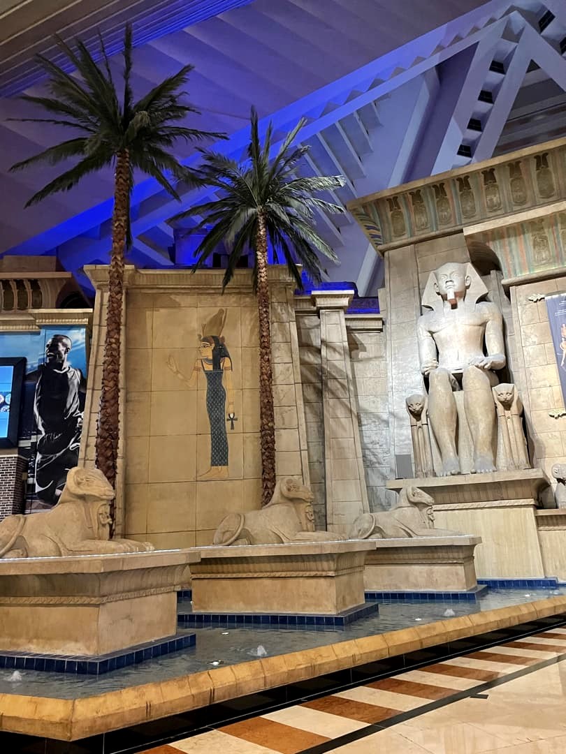 - Luxor : cet hôtel-casino en forme de pyramide égyptienne est totalement unique ! L’intérieur de la pyramide renferme le plus grand lobby au monde, et à l’extérieur, j’ai trouvé la piscine bien agréable (c’est ici que nous avons séjourné : c’est le casino-hôtel avec un des meilleurs rapports qualité-prix du Strip).