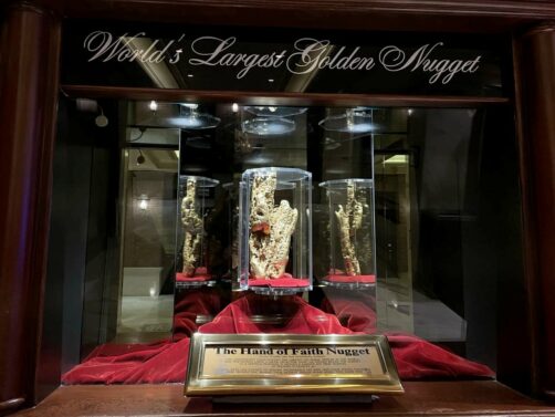 - Golden Nugget : le plus vieux casino de Las Vegas encore en activité ! Nous avons choisi d’y dormir pour ce côté historique. On y trouve aussi la plus grande pépite d’or au monde, la « Hand of Faith », visible dans le hall de l’hôtel-casino.