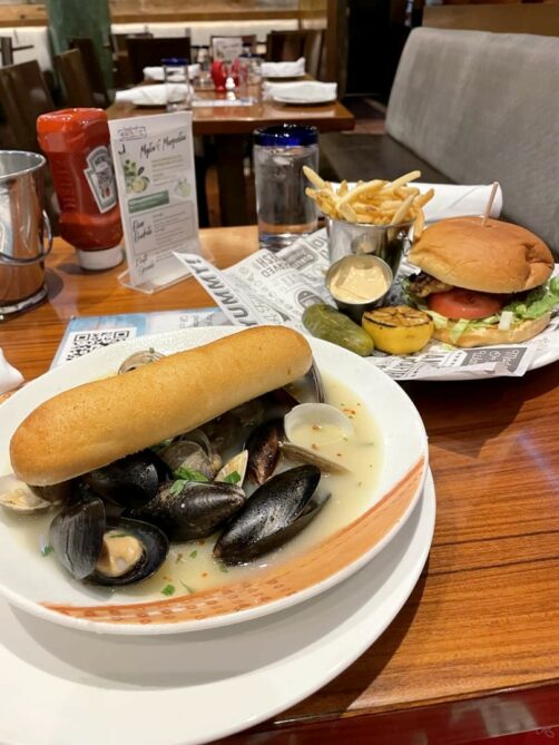 Après avoir perdu patience avec la file d’attente à n’en plus finir dans la plupart des restos un minimum intéressants de tous les autres casinos du Strip, nous avons fini par manger dans l’un des restaurants du casino Treasure Island, le Seafood Shack. Et ce fut au final une très bonne surprise, puisque le sandwich mahi mahi et les moules et coquillages que nous y avons mangé étaient tous excellents, et à des tarifs très corrects. Bref, une bonne découverte totalement par hasard !