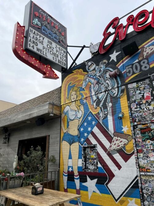 Ouverte 24h/24, cette adresse est aussi connue pour ses petits-déjeuners que pour ses sandwichs et burgers, avec également un happy hour intéressant. C’est toujours animé, mais le service est rapide et nous avons eu directement une table ! Même si vous venez pour manger, ne manquez pas d’aller jeter un oeil à l’espace bar, avec son « fire pit » qui donne l’impression de remonter le temps. Réputé comme le bar à cocktails le plus kitsch de la ville, je comprends pourquoi (et je suis fan !).