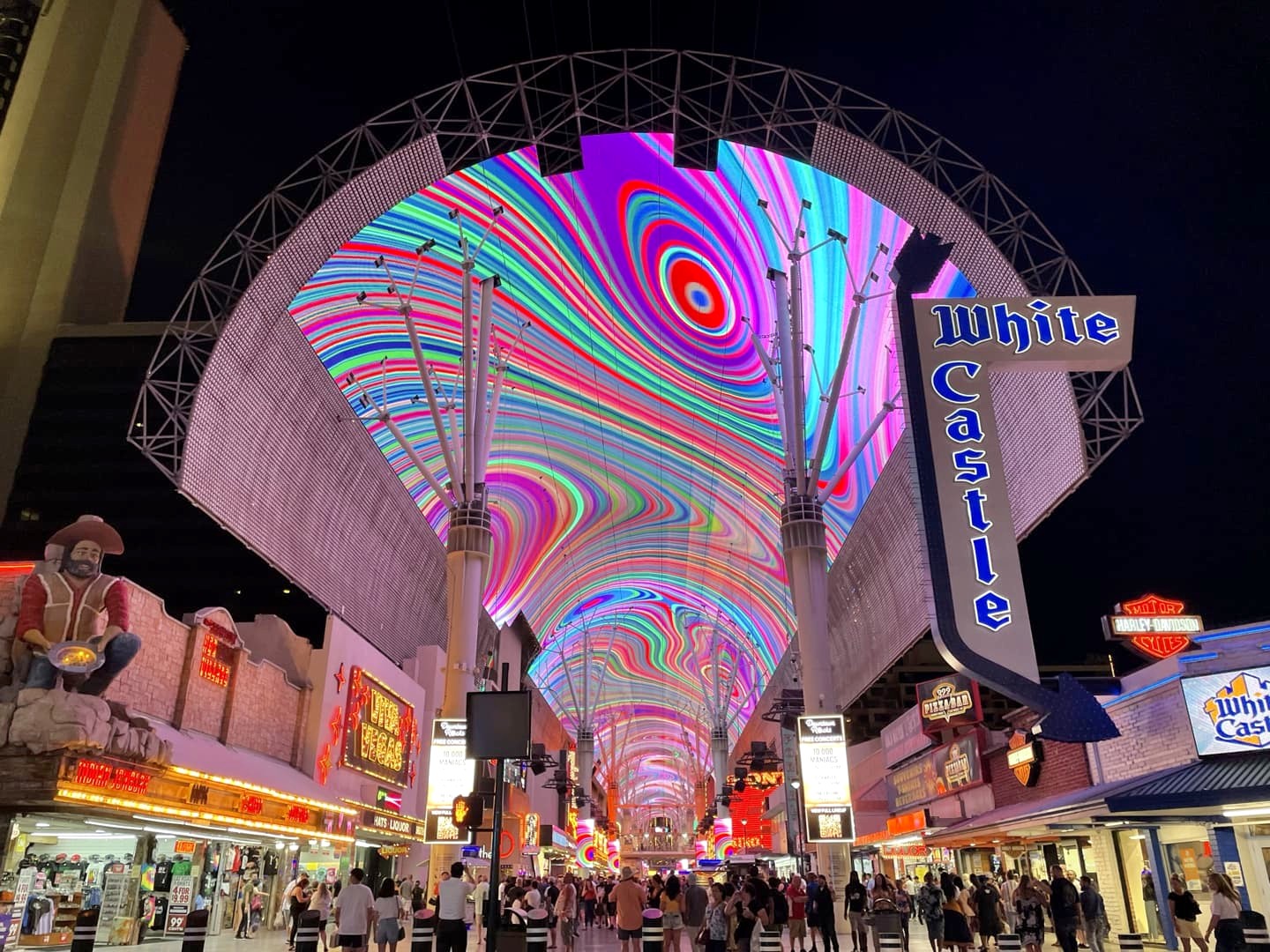 Fremont Street, c’est aussi plusieurs signes néons iconiques de Las Vegas, dont les plus connus sont Vegas Vickie et Vegas Vic (une cowgirl et un cowboy). Pour les amateurs de vieux néons, cette rue est le paradis !