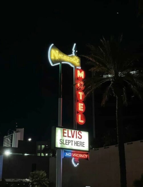 En chemin vers le musée, vous découvrirez aussi d’autres signes néons intéressants, comme celui de l’historique Normandie Motel, où a séjourné Elvis.