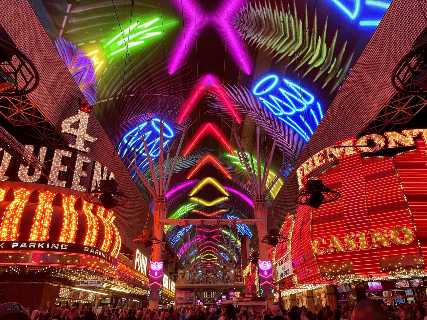 Ne manquez pas non plus la « Fremont Street Experience » : la voûte de Fremont Street est en fait une sorte d’écran géant, constitué de plus de 12 millions de LED, qui offre un spectacle de son et lumière durant toute la soirée (du coucher du soleil jusqu’à minuit-1h du matin). C’est hypnotisant !