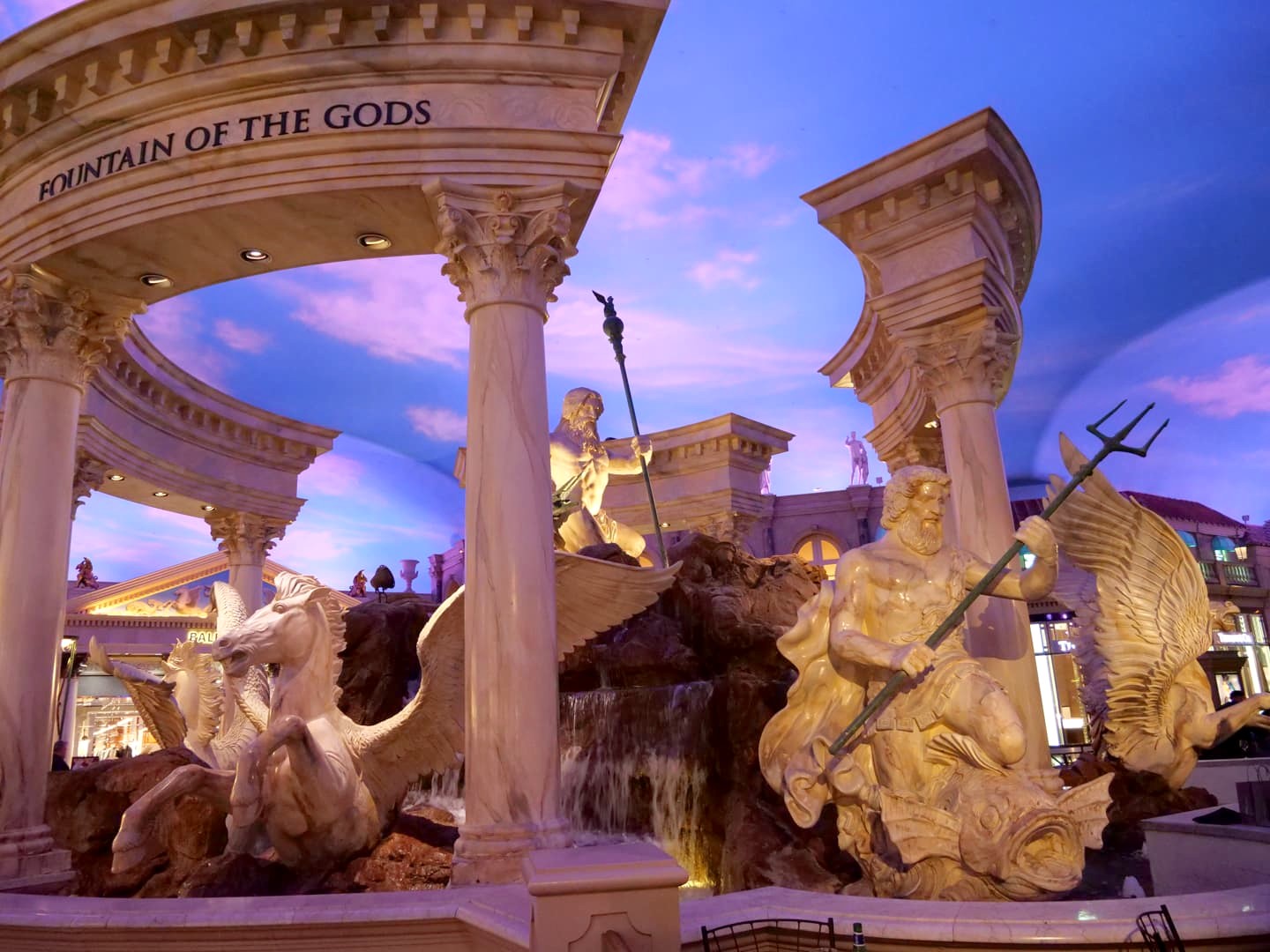- 1 – Caesars Palace : ce n’est pas juste parce que je suis fan de Friends que j’ai adoré ce casino ! Je trouve ses décors de style romain incroyables, que ce soit dans la partie casino ou dans leur énorme centre commercial (le plus grand su Strip), avec notamment des reproductions du Colisée et de la Fontaine de Trévi. C’est grandiose et vraiment classe.