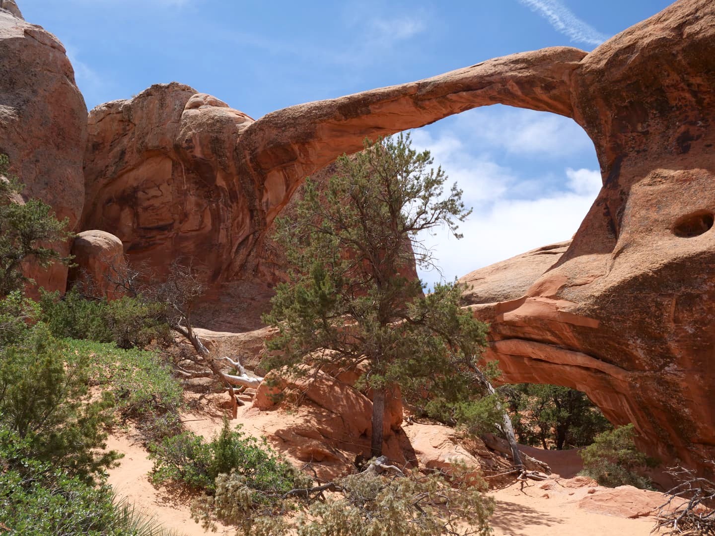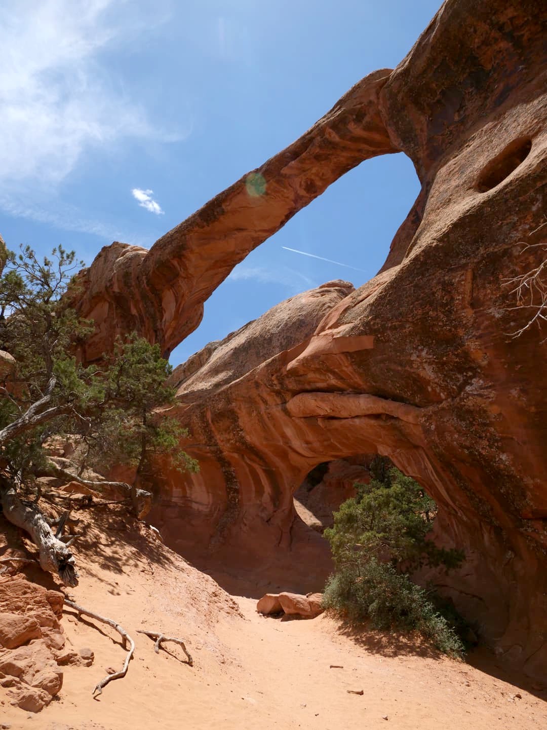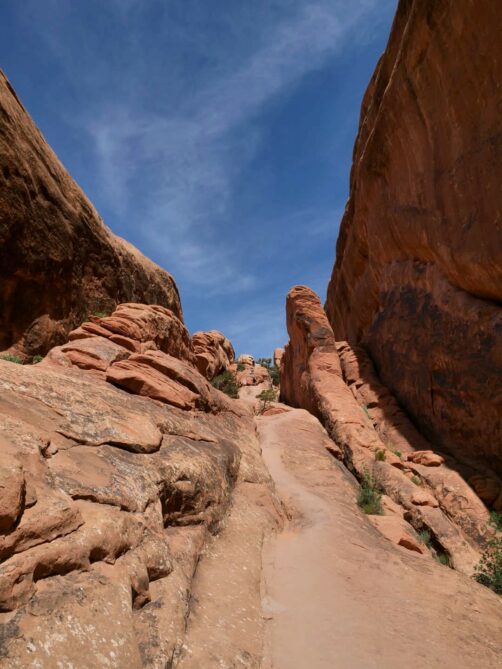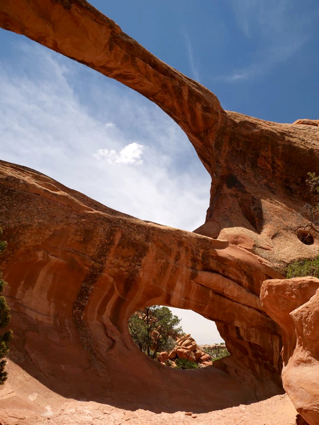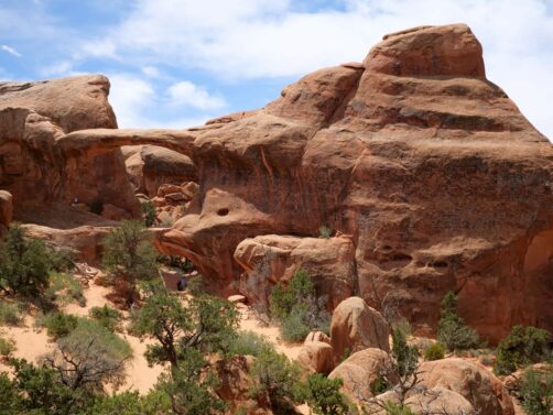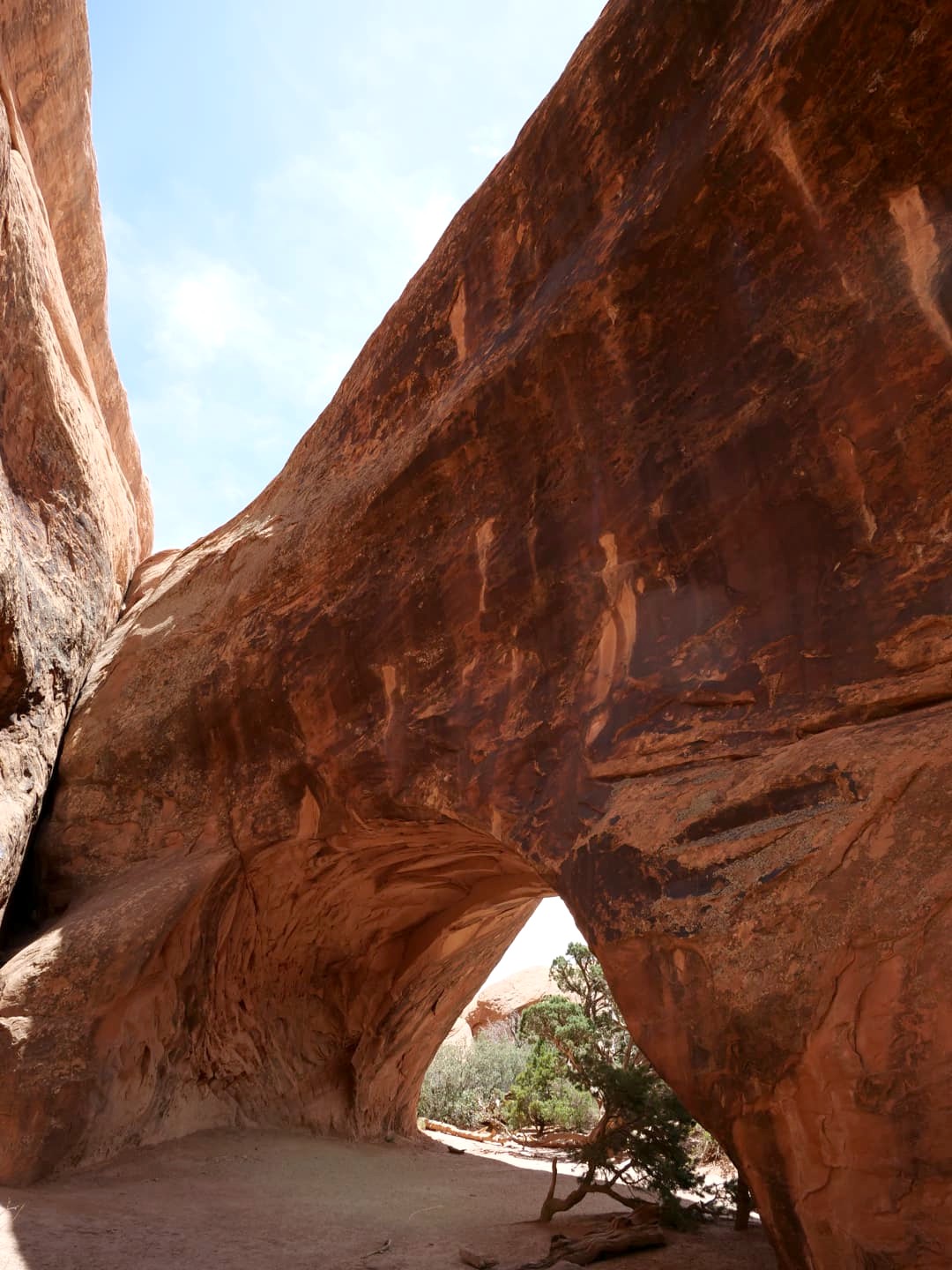 La première partie de la randonnée (accessible limite avec une poussette tellement le chemin est facile) n’est pas la plus scénique, mais elle permet de déjà voir plusieurs arches : d’abord Tunnel Arch et Pine Tree Arch, puis Landscape Arch, qui serait la plus longue arche naturelle au monde. Elle est particulièrement impressionnante, d’autant plus qu’elle est assez fine. Au total, il faut compter 3 km aller-retour pour cette partie.