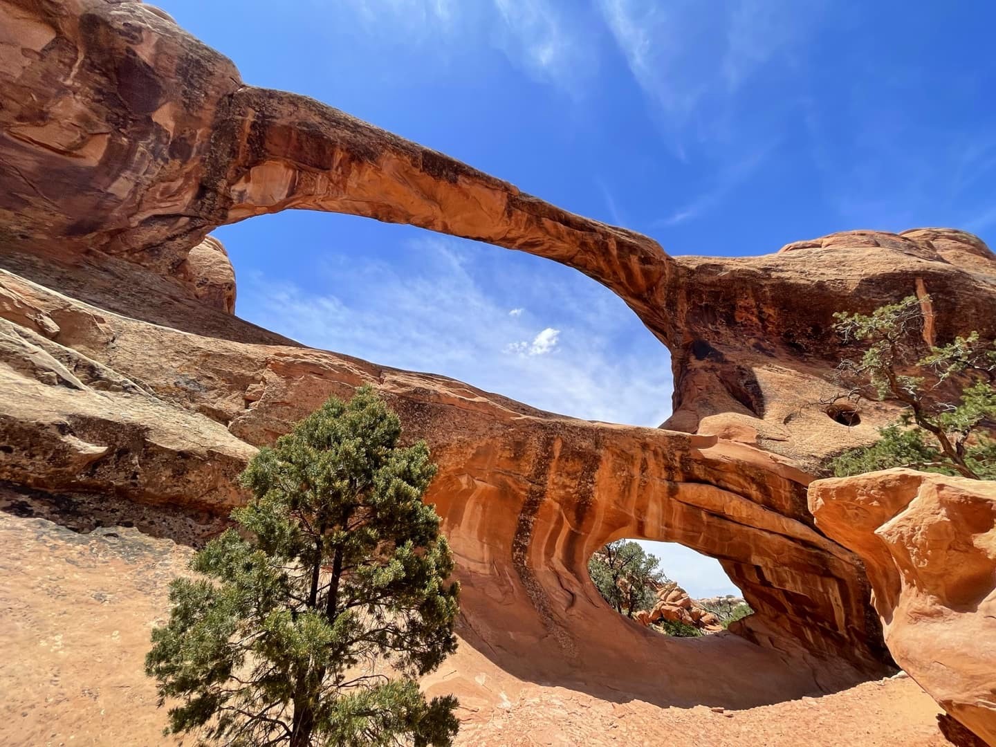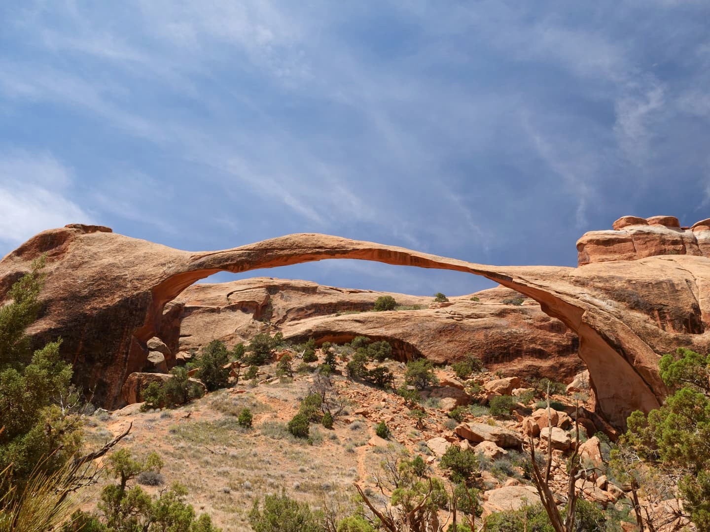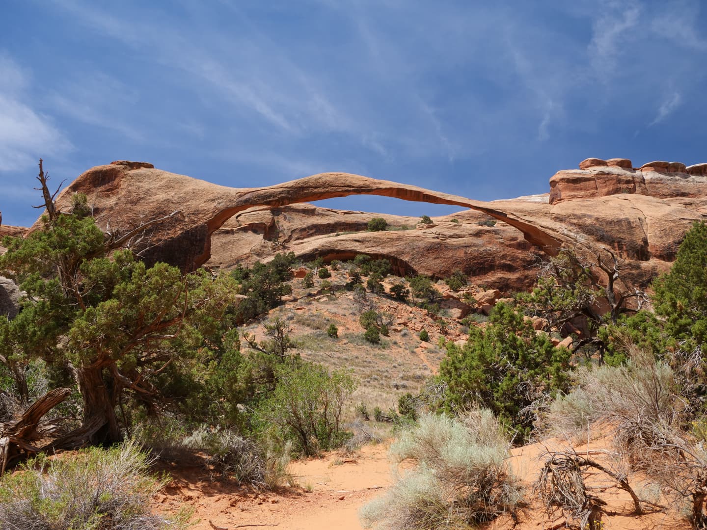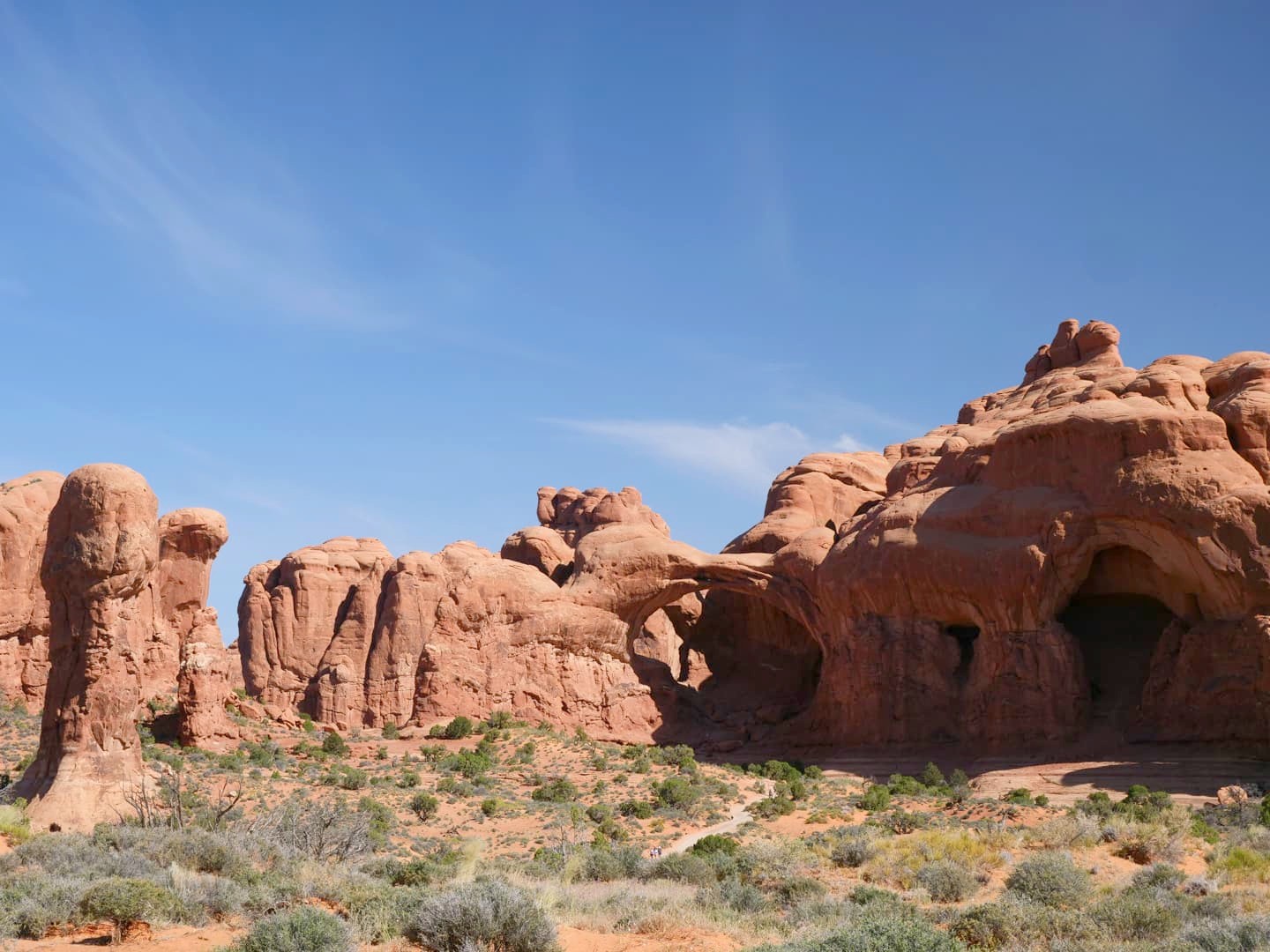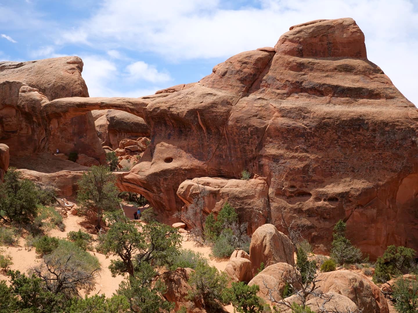 La première partie de la randonnée (accessible limite avec une poussette tellement le chemin est facile) n’est pas la plus scénique, mais elle permet de déjà voir plusieurs arches : d’abord Tunnel Arch et Pine Tree Arch, puis Landscape Arch, qui serait la plus longue arche naturelle au monde. Elle est particulièrement impressionnante, d’autant plus qu’elle est assez fine. Au total, il faut compter 3 km aller-retour pour cette partie.