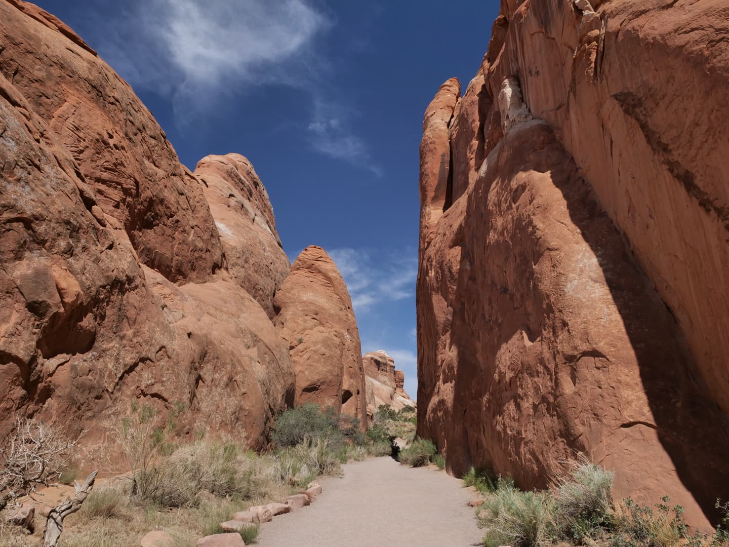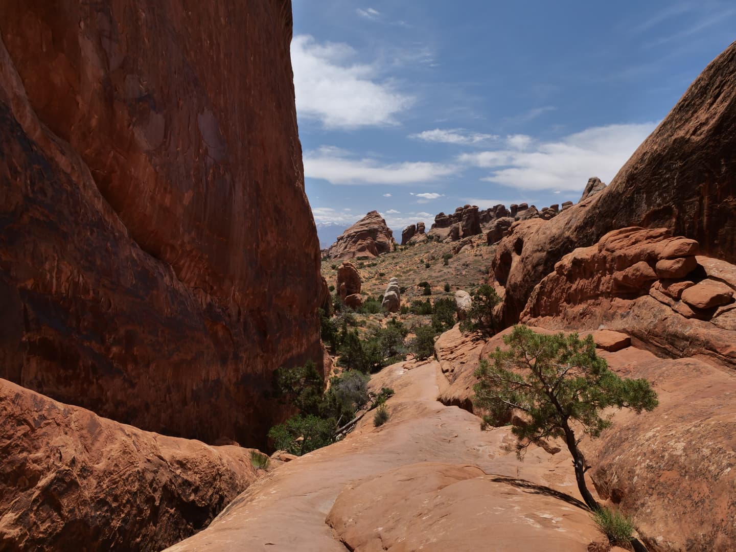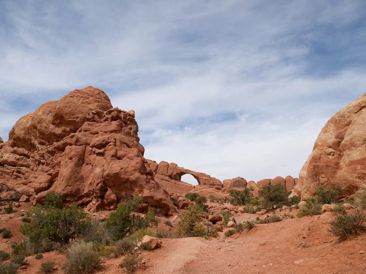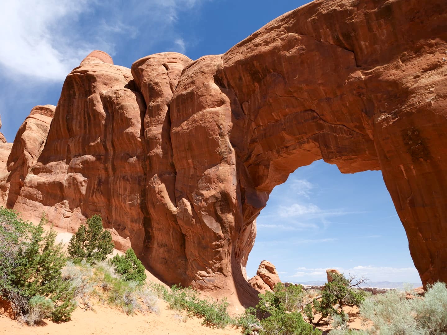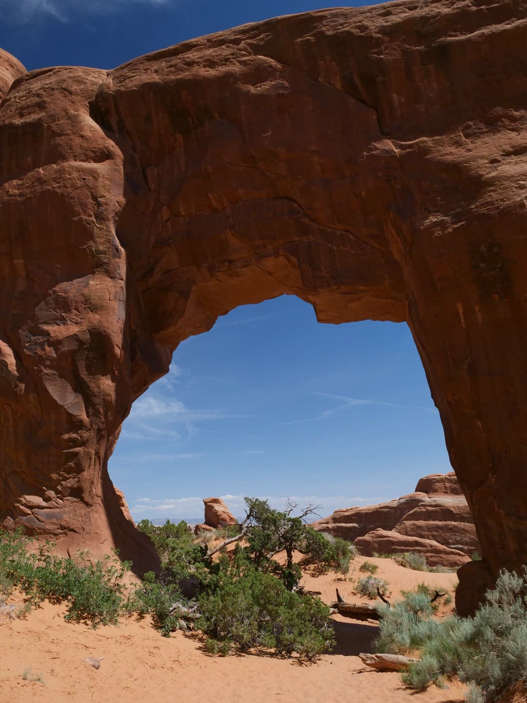 La première partie de la randonnée (accessible limite avec une poussette tellement le chemin est facile) n’est pas la plus scénique, mais elle permet de déjà voir plusieurs arches : d’abord Tunnel Arch et Pine Tree Arch, puis Landscape Arch, qui serait la plus longue arche naturelle au monde. Elle est particulièrement impressionnante, d’autant plus qu’elle est assez fine. Au total, il faut compter 3 km aller-retour pour cette partie.