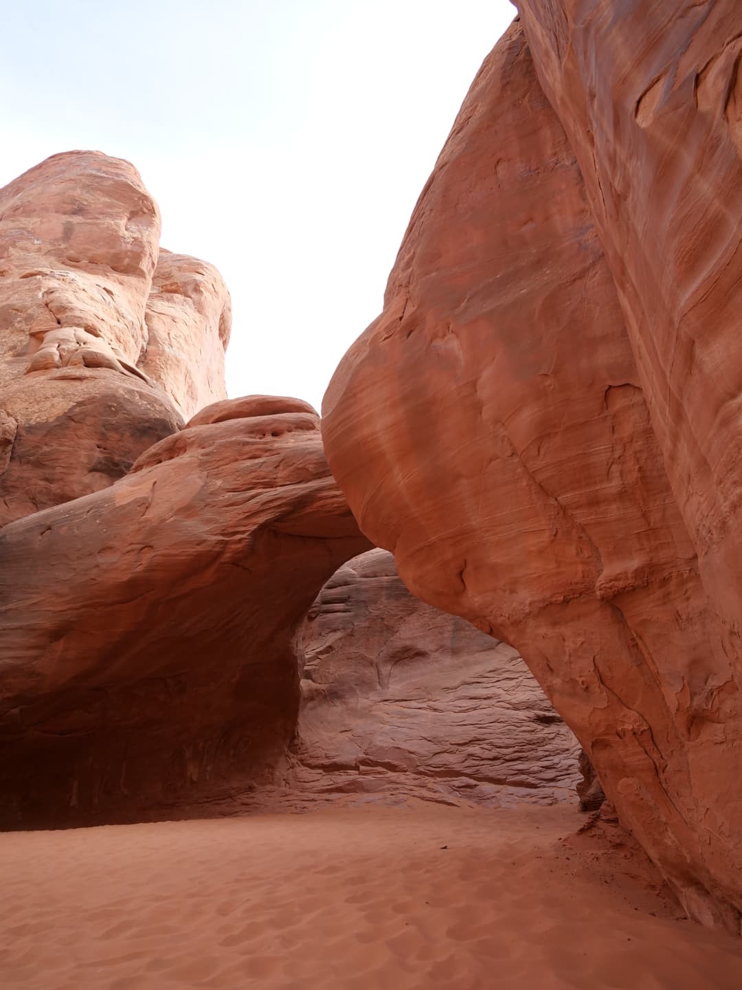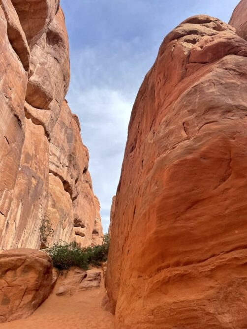Un peu plus loin, nous parcourons le petit sentier (environ 10 minutes) menant à la Sand Dune Arch qui semble être… la plaine de jeu du parc ! Cette arche est entourée par une grande zone de sable, où semblent adorer jouer les enfants.