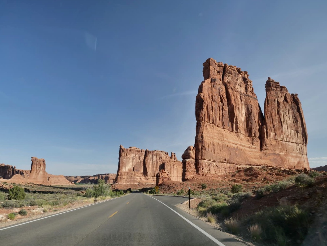 Après avoir passé le Visitor Center (où ne nous sommes pour une fois même pas arrêtés), la Scenic Drive traverse tout d’abord une zone parsemée d’impressionnantes formations rocheuses. Celles-ci forment d’abord la « Park Avenue », un des premiers points de vue qui mérite un arrêt au début du parc.