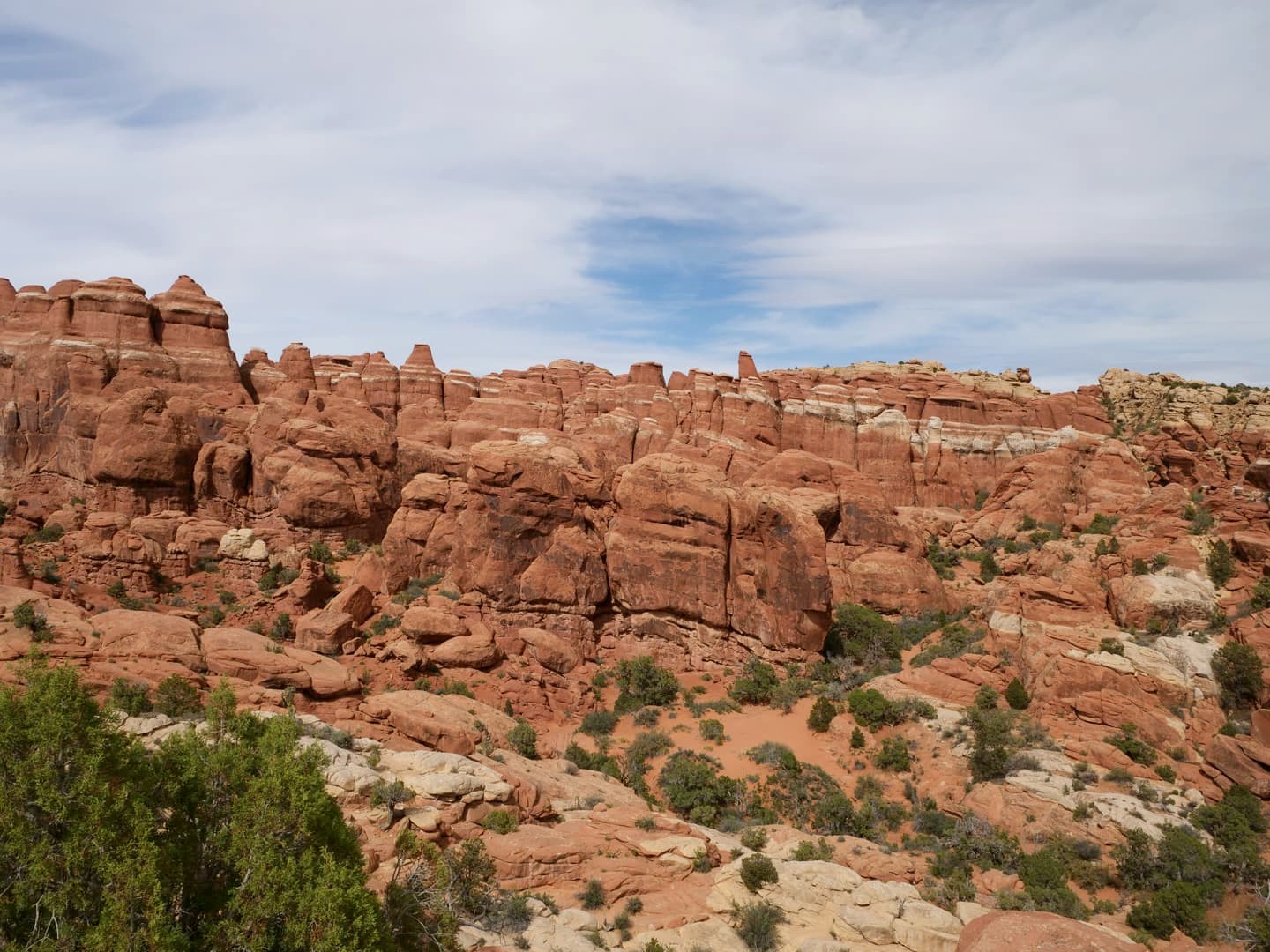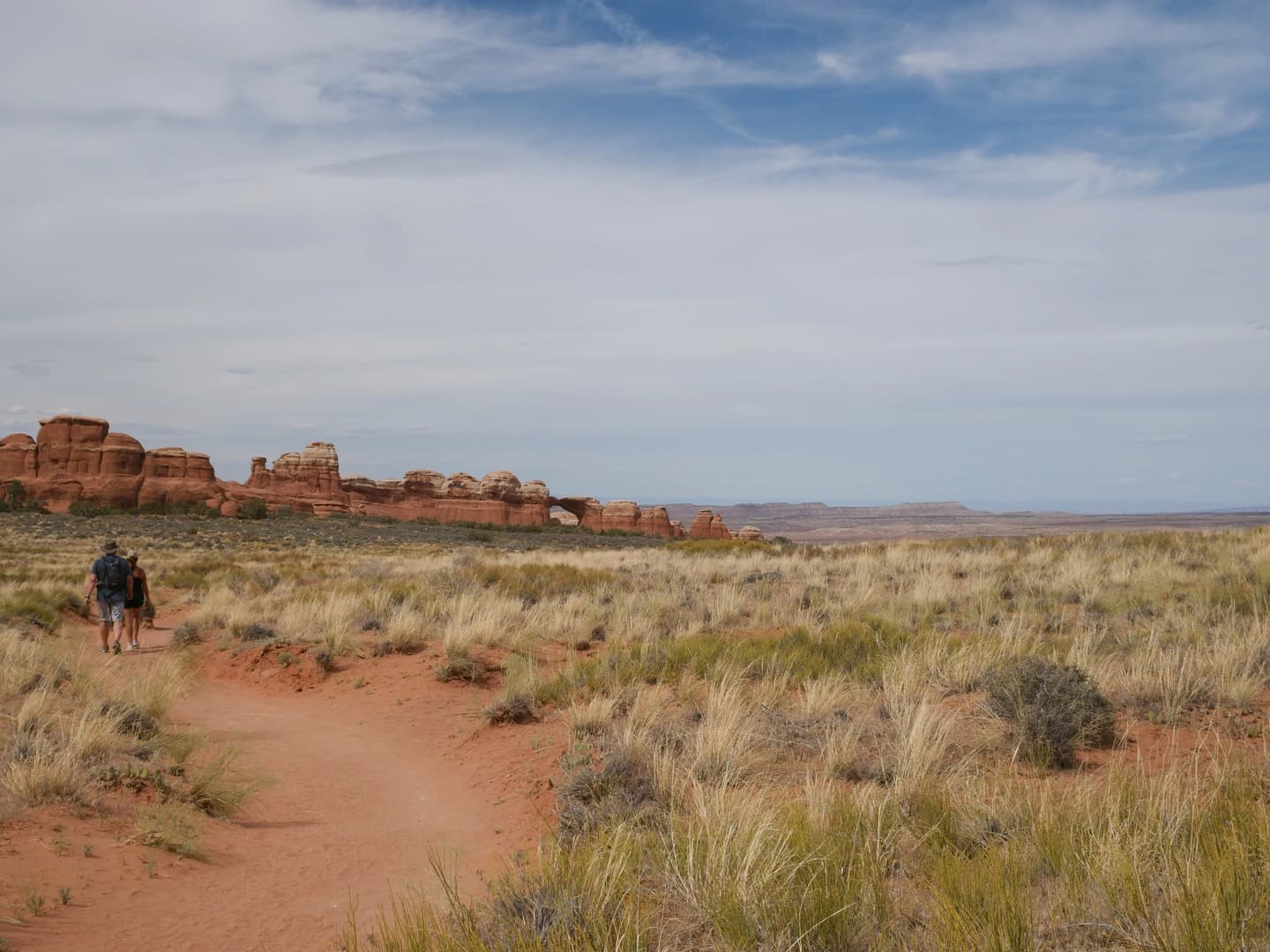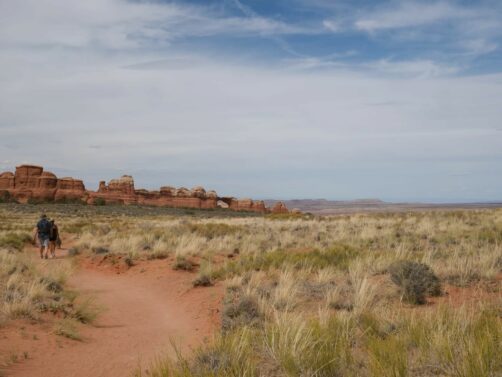 Heureusement, le sentier est modulable : vous pouvez choisir de vous contenter de parcourir seulement les premiers kilomètres, sur un sentier très bien aménagé, ou de faire la grande boucle qui prend 4 heures 30 environ. Nous avons choisi une solution intermédiaire, à savoir faire les 6,6 km aller-retour menant à la Double 0 Arch, mais en revenant sur nos pas plutôt que de rentrer par la Primitive Trail, la partie la plus compliquée de la randonnée complète.