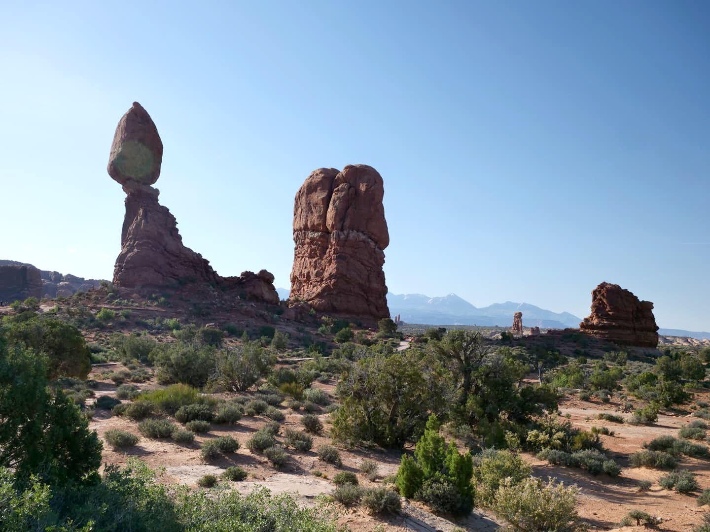Pour une petite mise en jambe, nous avons commencé par une première courte balade, très facile, autour de Balanced Rock. Pas une arche, mais une cheminée de fée assez impressionnante ! Comptez environ 20 minutes, arrêts photos compris.