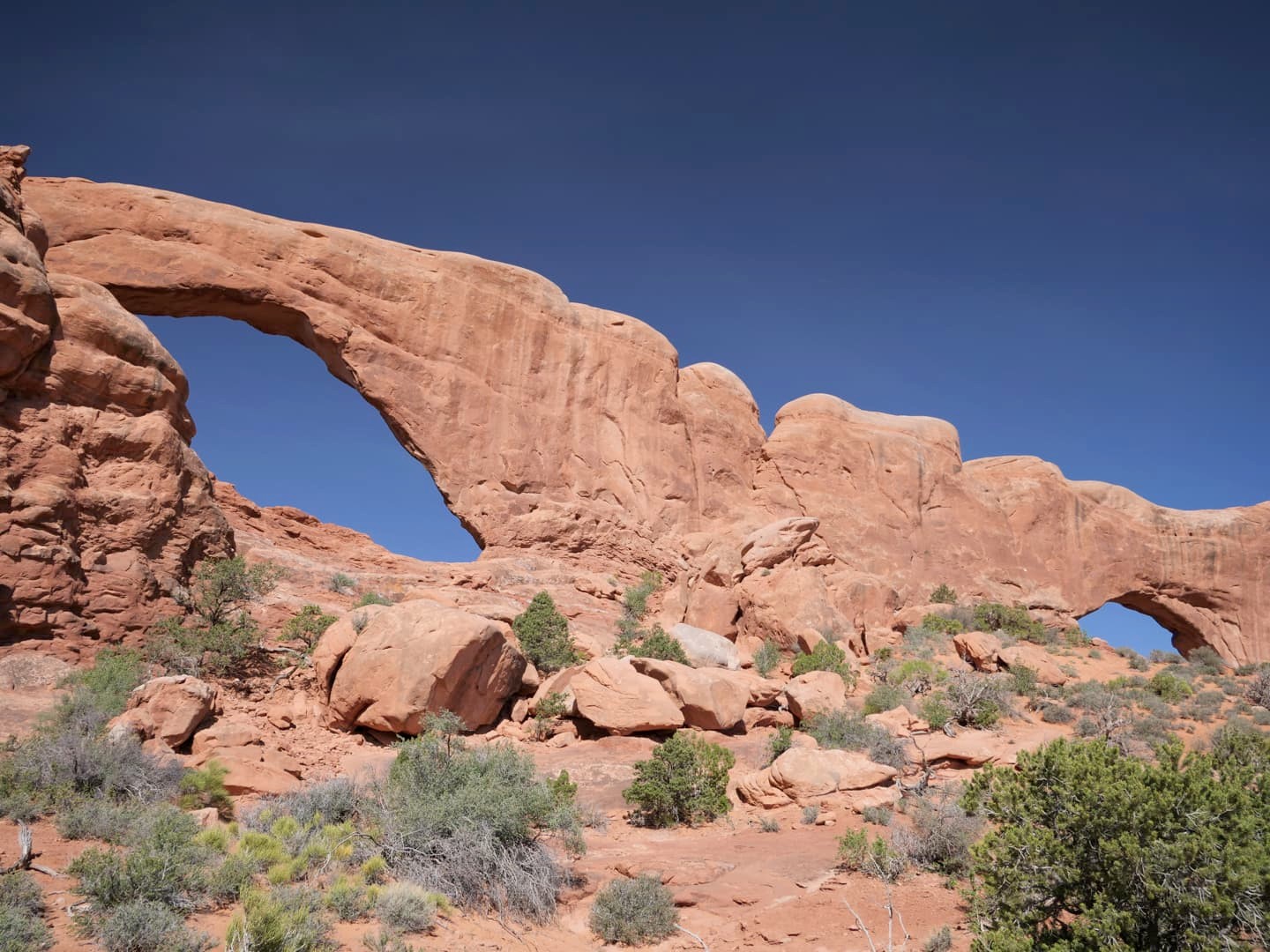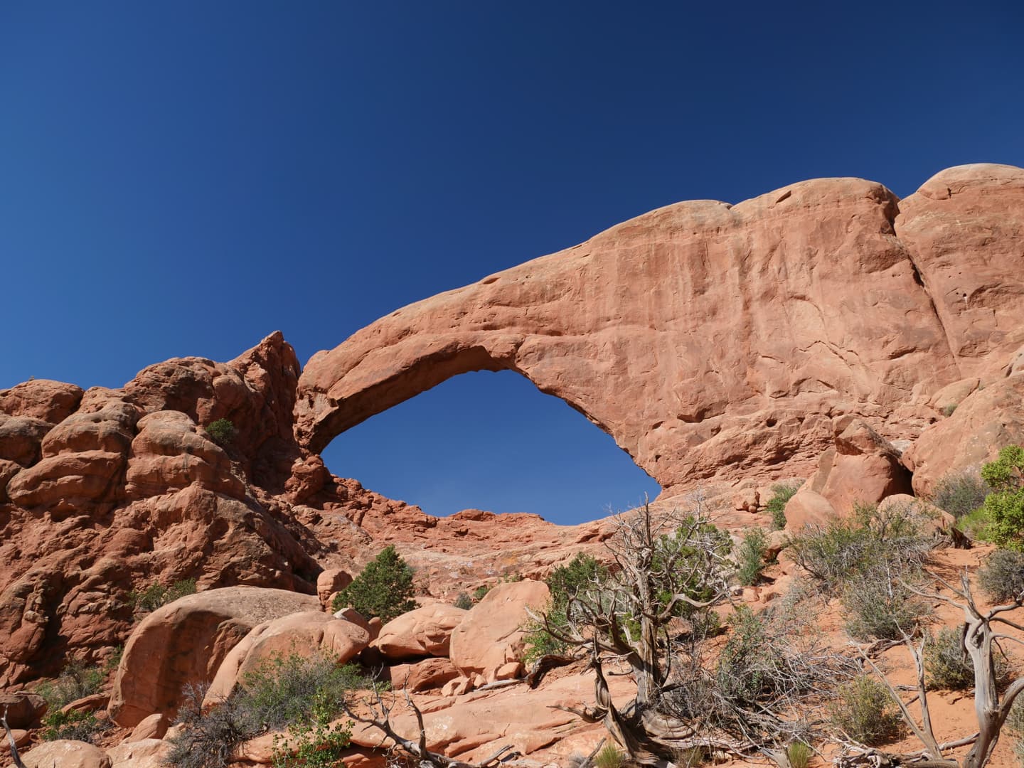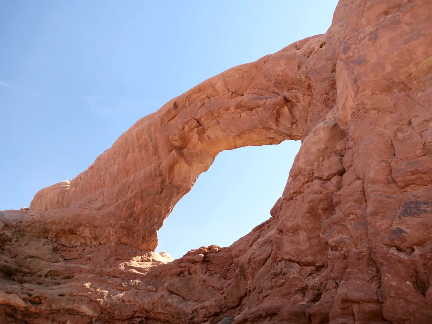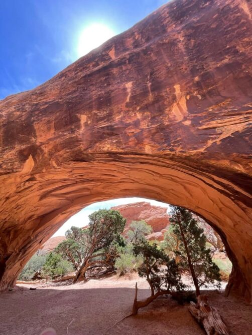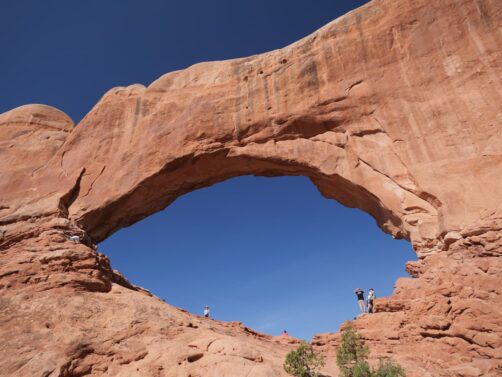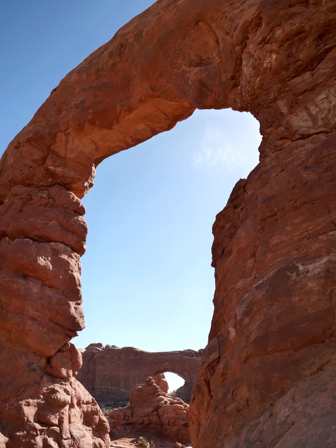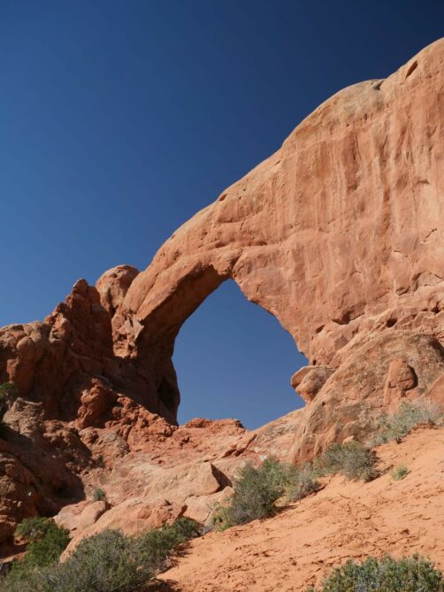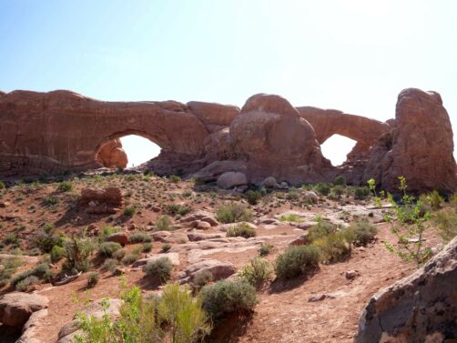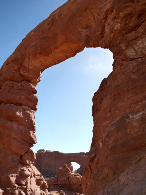 Nous avons commencé par partir en direction de la Windows Trail, qui permet de faire le tour de deux arches voisines, North Window et South Window. Près de celles-ci vous pourrez aussi admirer la Turret Arch, plus petite. La majeure partie des touristes s’arrêtent devant les arches, mais passer de l’autre côté permet d’en avoir un autre point de vue et surtout, de fuire la foule !