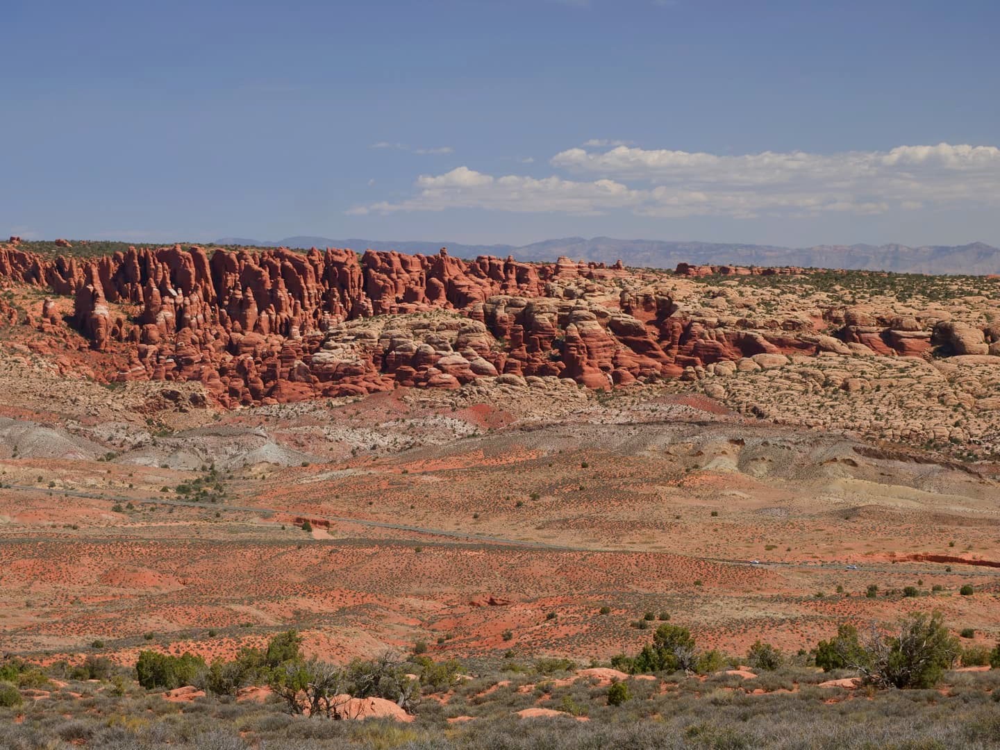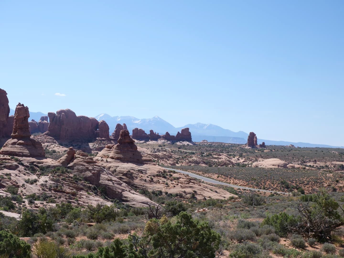 En reprenant la route, on passe ensuite par toute une série de points de vue, que nous avons juste observés depuis la voiture : Sal Mountains Viewpoint, Courthouse Towers Viewpoint, Petrified Dunes Viewpoint…