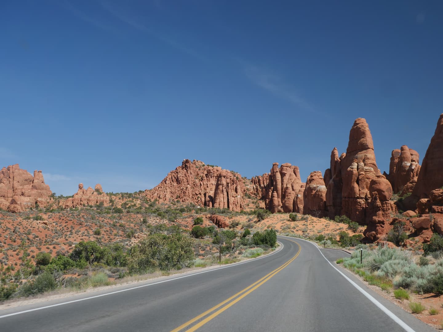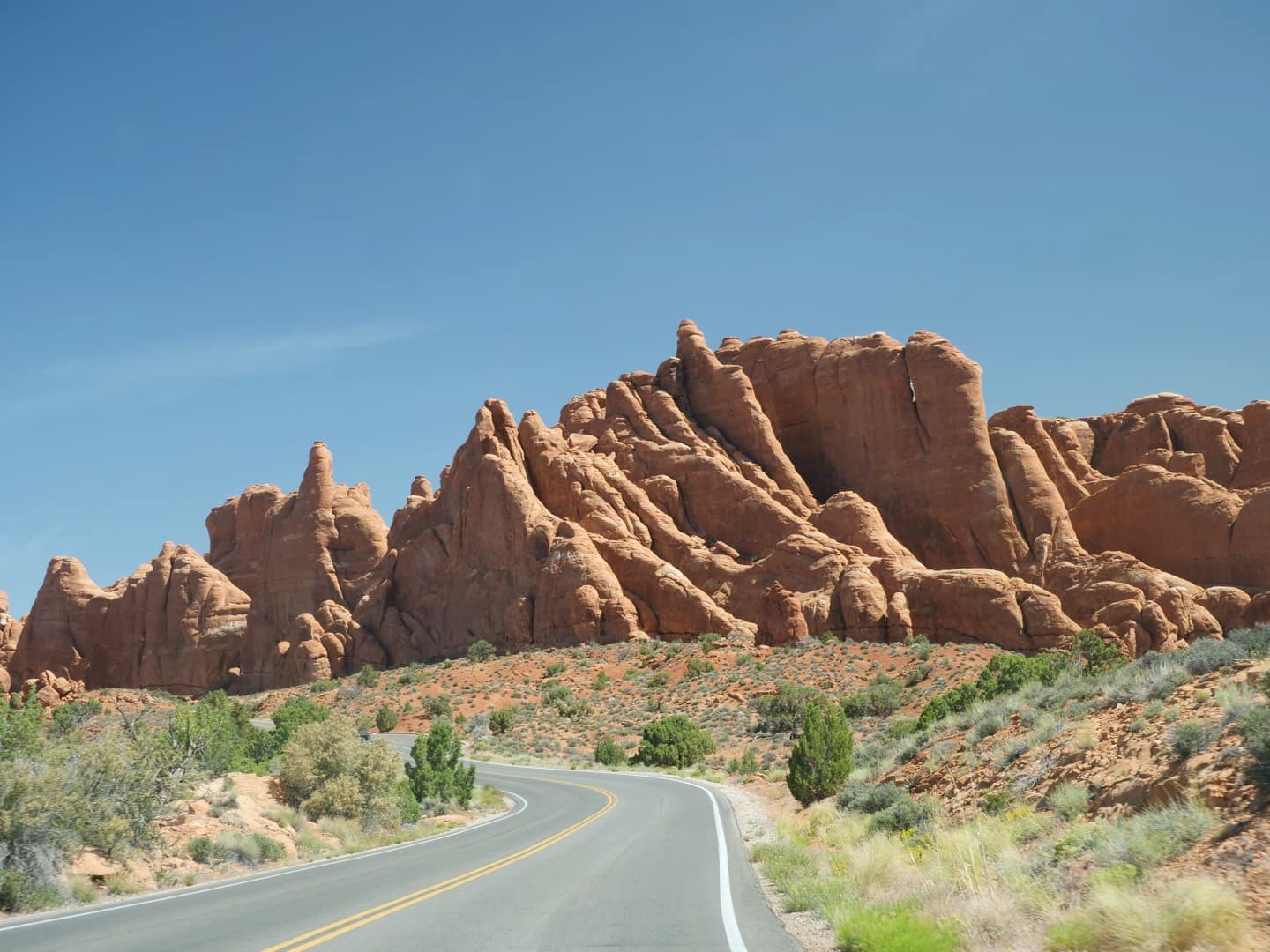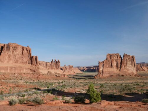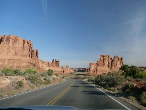 Voici le résumé détaillé de notre journée dans le Arches National Park, depuis notre entrée tôt le matin. Attention : prenez bien assez d’eau et de nourriture avec vous avant de rentrer dans le parc ! Vous n’y trouverez rien à manger, et les points d’eau sont aussi très, très limités : vous n’en trouverez qu’au parking du Devil’s Garden (où il y avait d’ailleurs une file monstre !) et au Visitor Center.