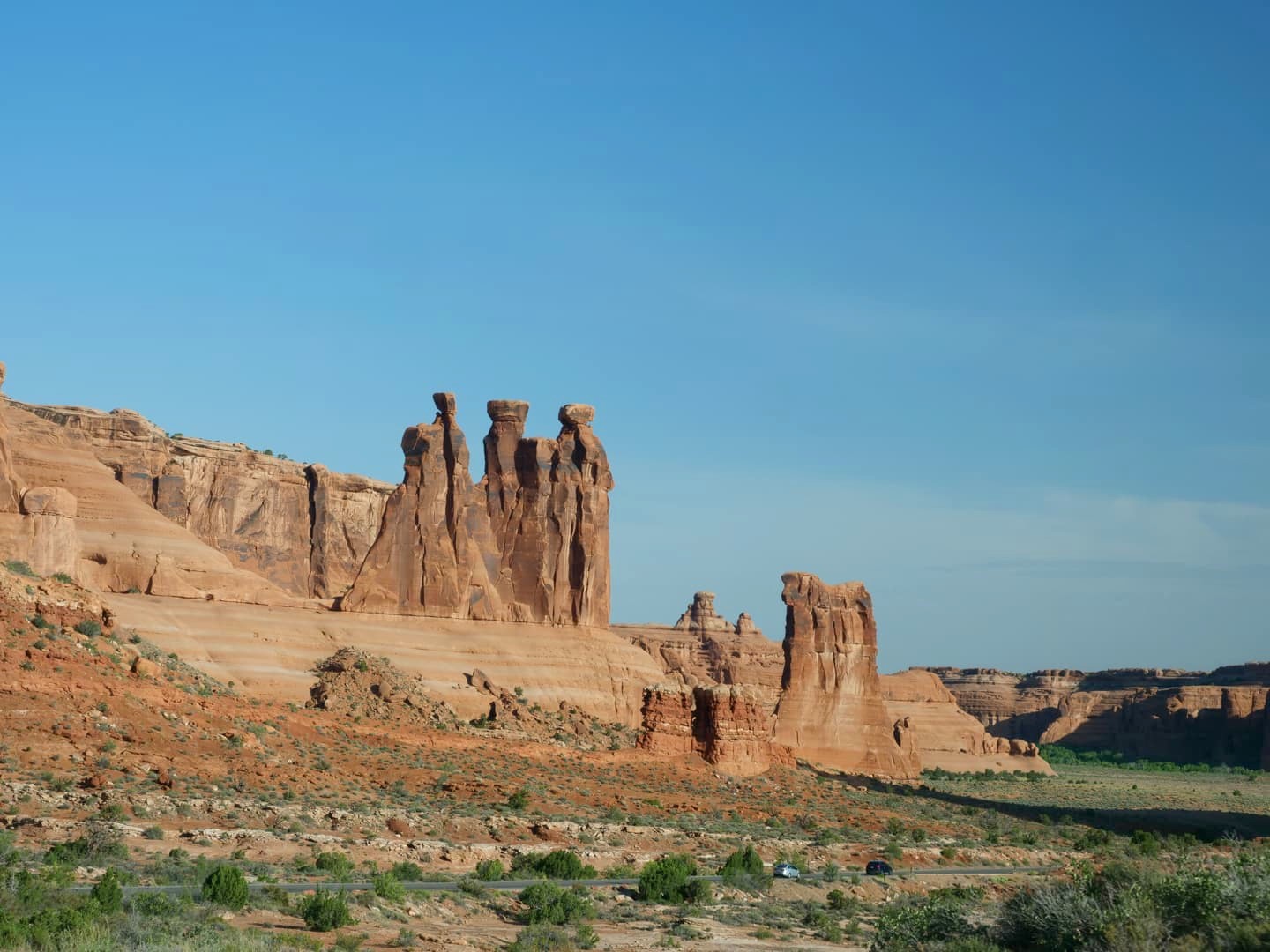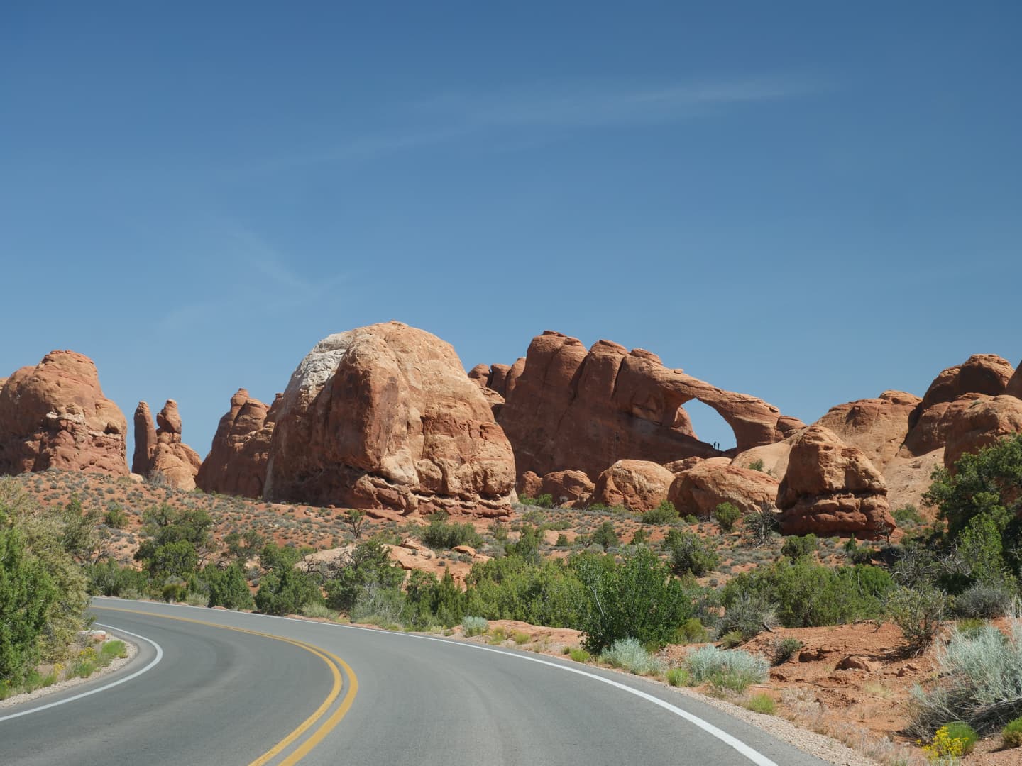Nous avons ensuite fait un premier détour de la route principale pour prendre la petite route secondaire menant à un groupe de plusieurs arches naturelles très proches les unes des autres. On en voit d’ailleurs plusieurs directement depuis le parking ! Au total, je pense que nous avons passé environ 1h30-2h ici.