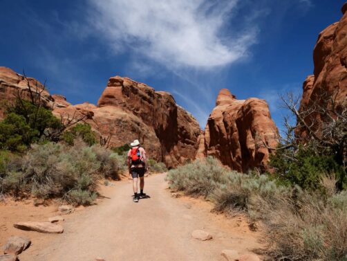 Si vous n’avez envie de faire qu’une seule randonnée, celle menant à la Delicate Arch est la plus connue. Je déconseille par contre celle-ci et la deuxième partie du Devil’s Garden aux personnes souffrant beaucoup du vertige (si vous n’avez qu’un peu le vertige, ça reste faisable). Mais il n’y a pas forcément besoin non plus de faire de longues randonnées pour découvrir des arches, puisque certaines peuvent s’observer directement depuis la route, et d’autres sont accessibles par de très courtes randonnées. Bref, il y en a donc pour tous les niveaux !