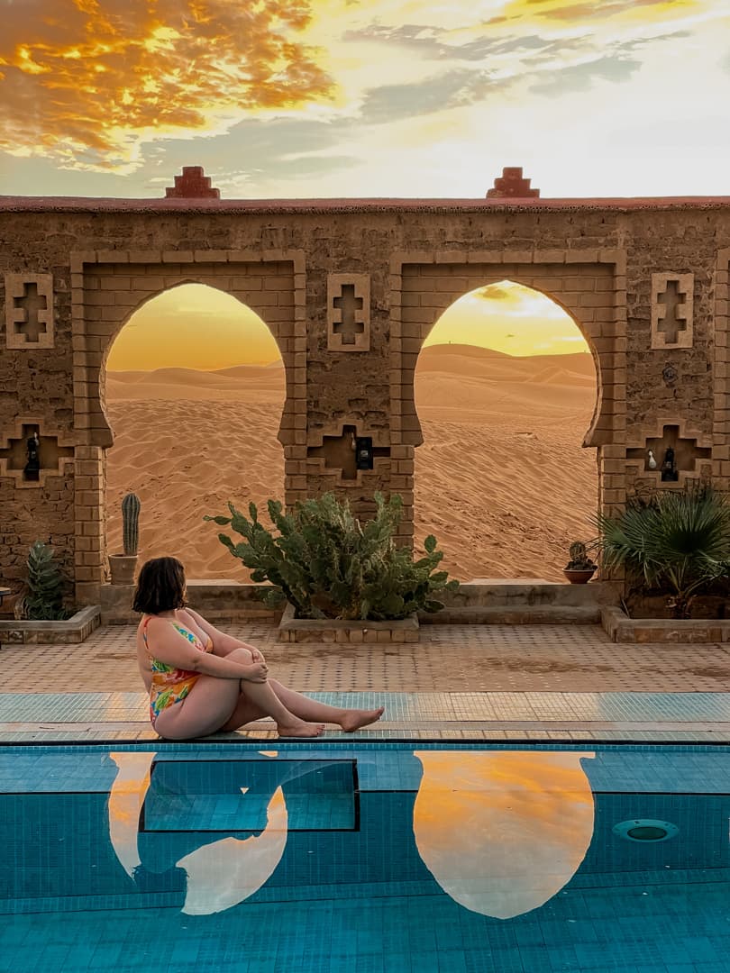 Hébergement : 1 nuit littéralement aux pieds des dunes au Riad du Café du Sud, l’une des adresses incontournables de la région ! La piscine avec vue sur les dunes est l’une des plus belles que j’ai pu voir en voyage – le lever et le coucher du soleil ici sont tout simplement incroyables. Voir plus de photos et les tarifs actuels ici.