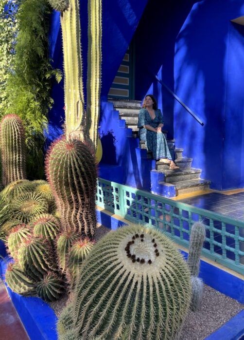 Ensuite, nous prenons un taxi à la mosquée Koutoubia pour rejoindre Le Jardin Majorelle. Plus petit et plus bondé que dans mes souvenirs, et surtout : il faut à présent absolument réserver un créneau ! Mais je voulais voir le « nouveau » musée Yves Saint Laurent… Petit lui aussi, mais malgré tout, c’est à voir une fois !