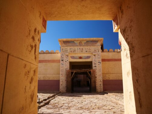 Nous commençons par passer devant le studio où a été tournée la saison 5 de la série « Prison Break » avant de nous rendre dans l’un des studios qui a été utilisé pour « The Mummy » mais aussi pour la scène dans la pyramide de « Astérix et Obélix Mission Cléopâtre ». Nous passerons également par plusieurs autres décors utilisés pour ce film, puisque les Studios Atlas servent très souvent pour représenter l’Égypte antique.