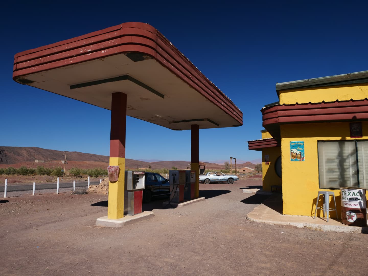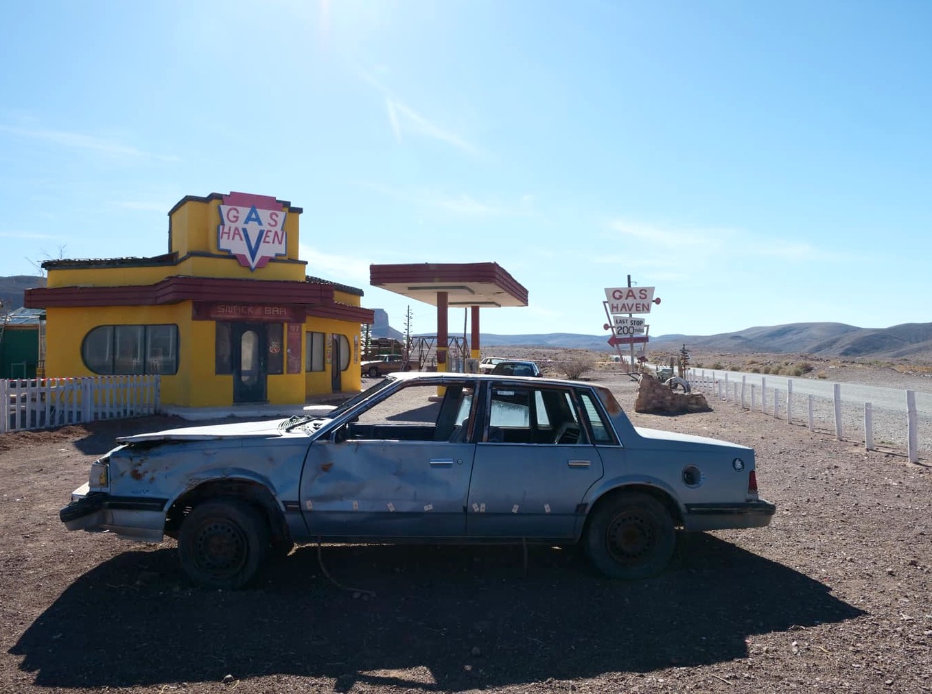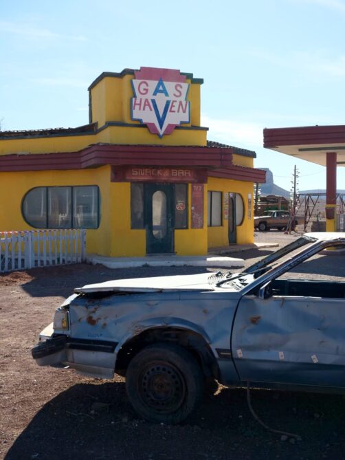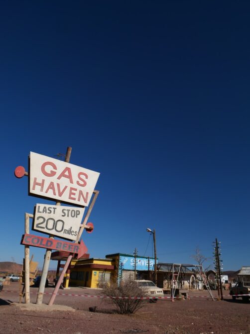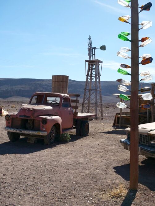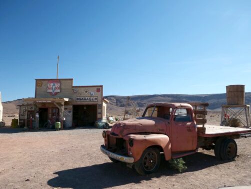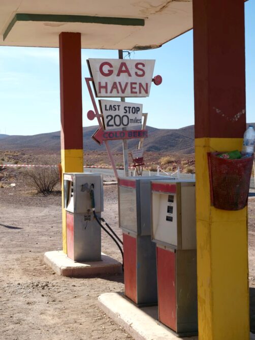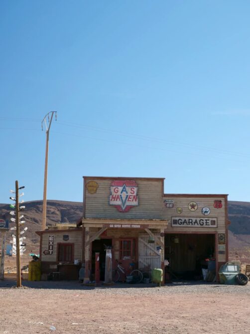 Si vous avez encore un peu de temps, je vous recommande de faire une autre visite beaucoup moins connue mais très scénique : celle d’un des lieux de tournage d’un film d’horreur hollywoodien, « The Hills Have Eyes ». Ce set est indiqué sur Google Maps en tant que « The ‘Hills Have Eyes’ Gas Station » : vous ne pouvez pas le rater ! On y accède via une route scénique désertique. C’est surprenant, car on se croirait vraiment aux États-Unis !