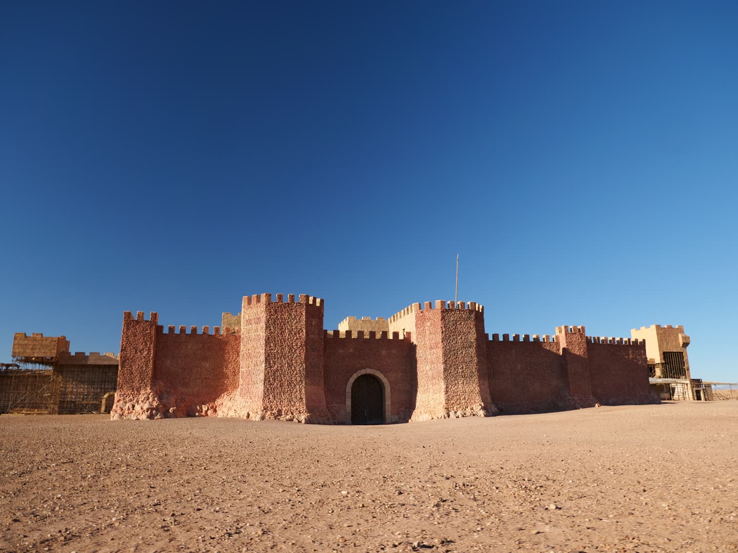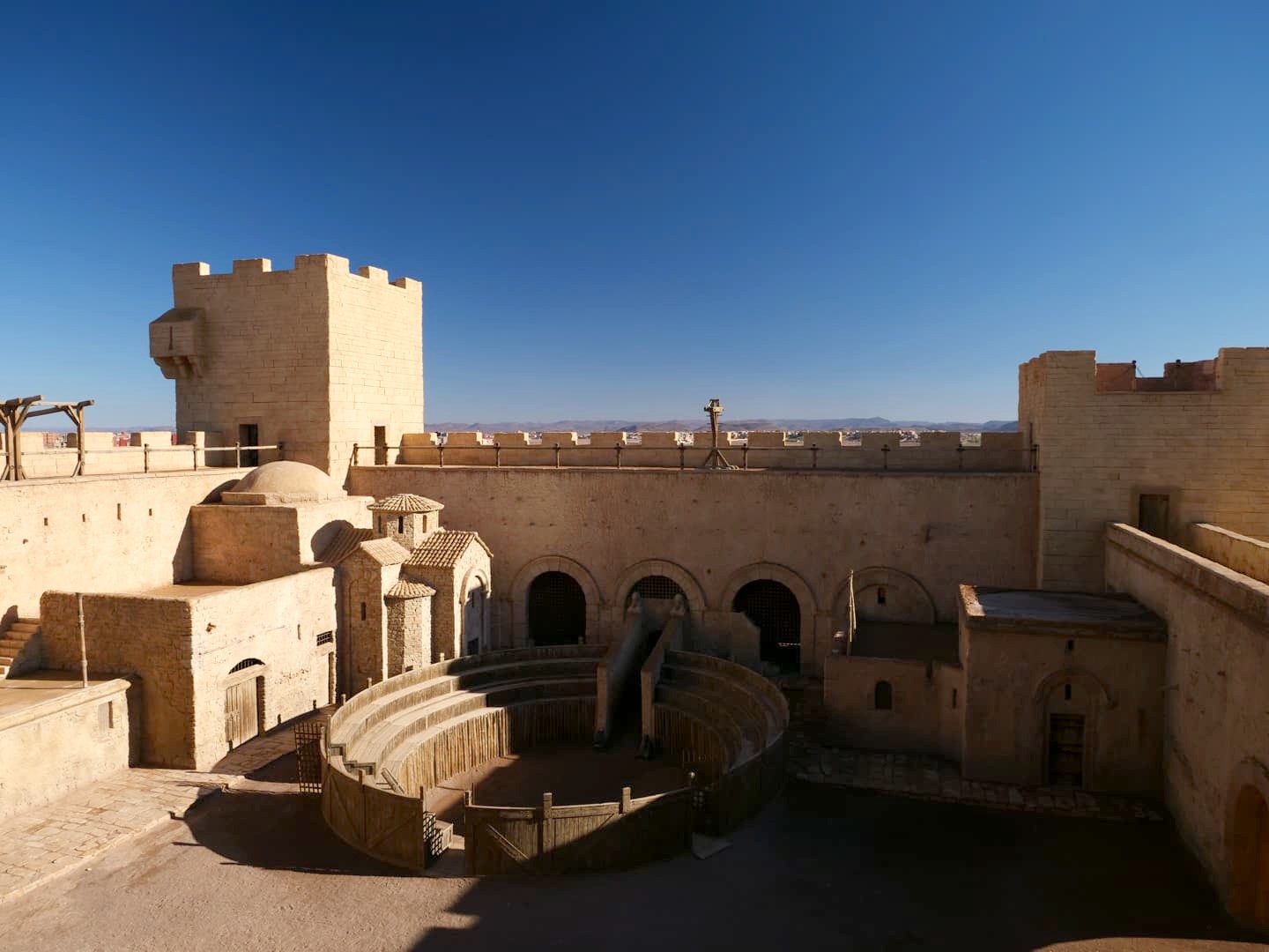 Après cette visite très intéressante, nous avons repris la voiture en direction de la deuxième partie des décors, surnommé le set « Kingdom of Heaven », une sorte de « château multifacettes » situé en plein désert. C’est vraiment drôle de voir les dizaines de variations de châteaux qui ont été entremêlées sur le même set ! Ce set a notamment servi à représenter Astapor (une des villes de Daenerys) dans « Game of Thrones ». Sans guide, nous n’avons pas réussi à reconnaître tous les films qui y avaient été tournés, mais c’était vraiment sympa de pouvoir s’y balader seuls, toucher les décors, voir comment ils sont construits… J’ai adoré !
