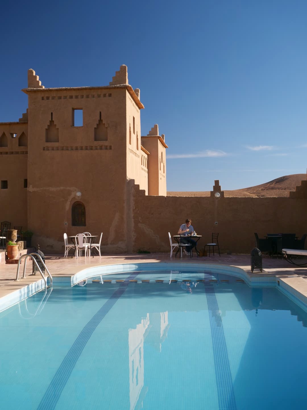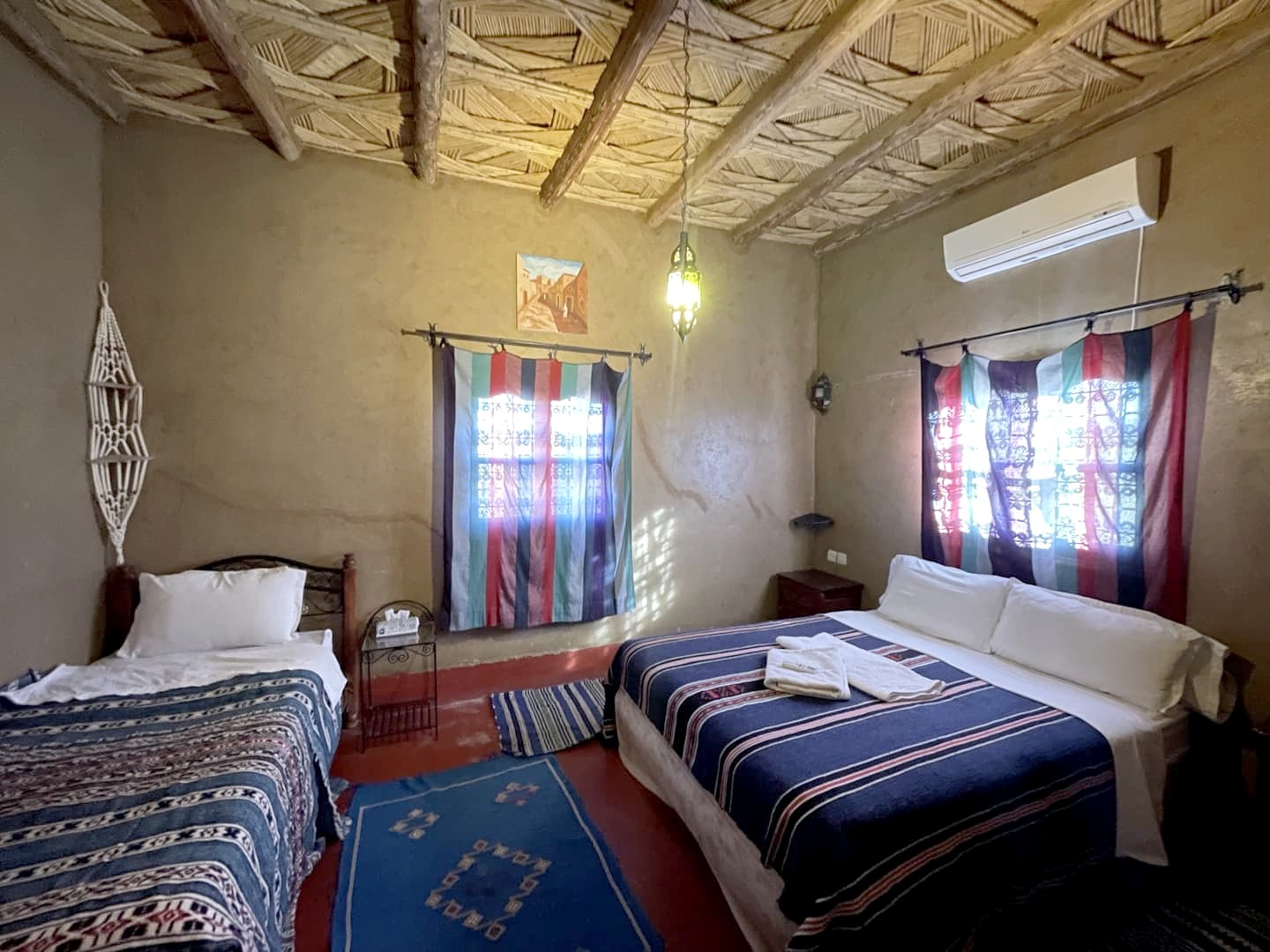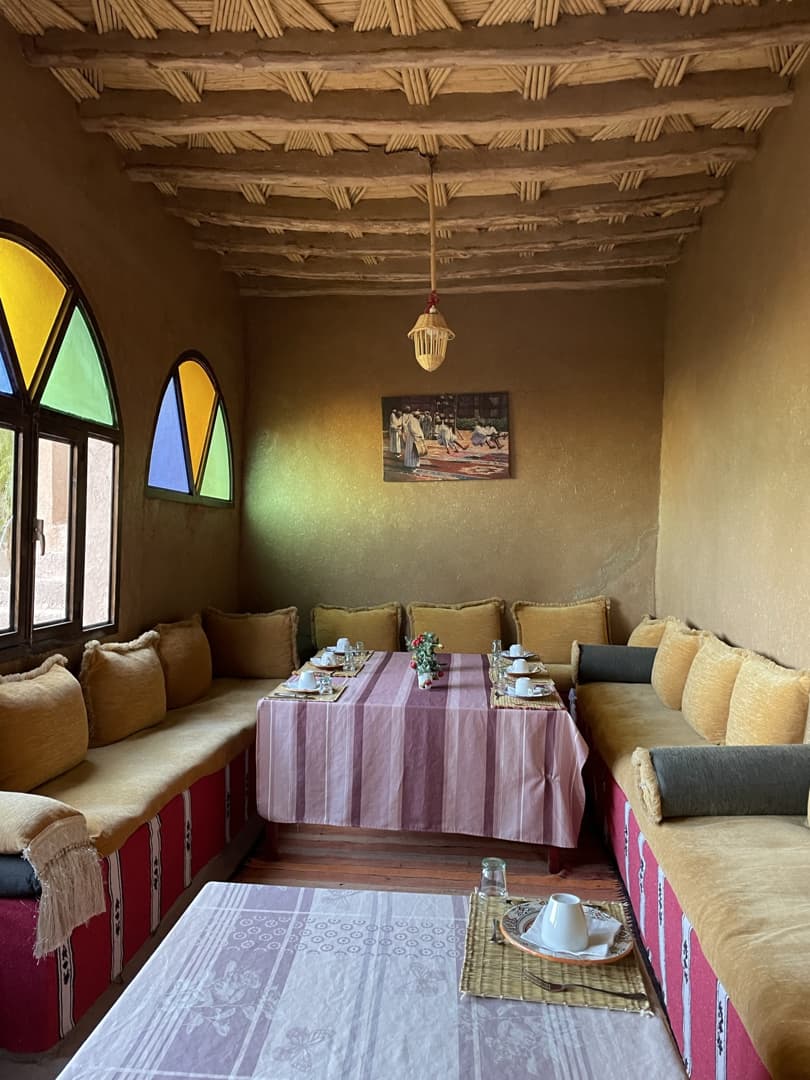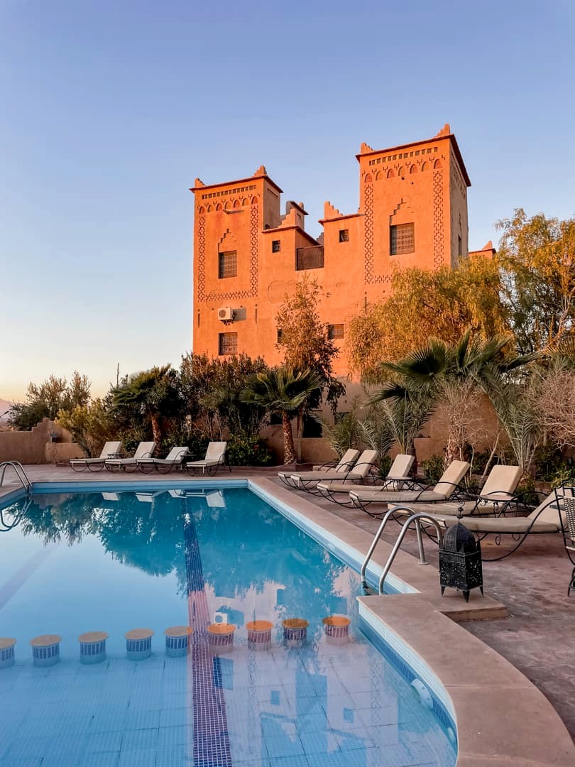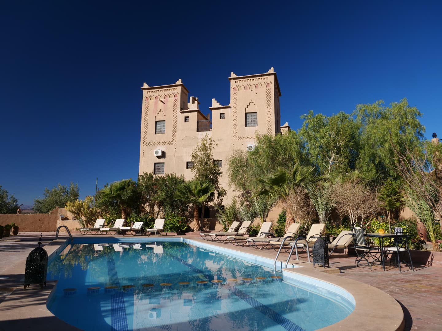 Cette authentique kasbah a été rénovée avec goût par son propriétaire passionné, qui a fait un travail de restauration titanesque pour arriver à ce résultat. Comme nous étions seuls, celui-ci nous a laissé faire le tour de toutes les chambres et choisir celle que l’on préfèrait – c’est toujours appréciable ! Les chambres sont assez simples mais joliment décorées, confortables et très propres. Mais il faut dire que nous n’y avons pas passé beaucoup de temps tant les espaces communs extérieurs étaient accueillants. Nous y avons passé une après-midi au calme, en profitant de la lumière magique de fin de journée (même si la piscine est trop froide pour en profiter à cette période de l’année).