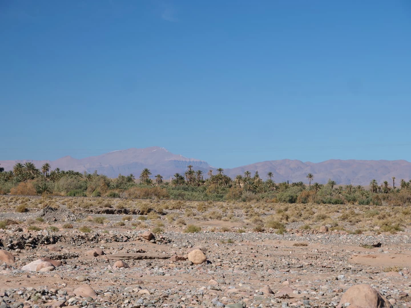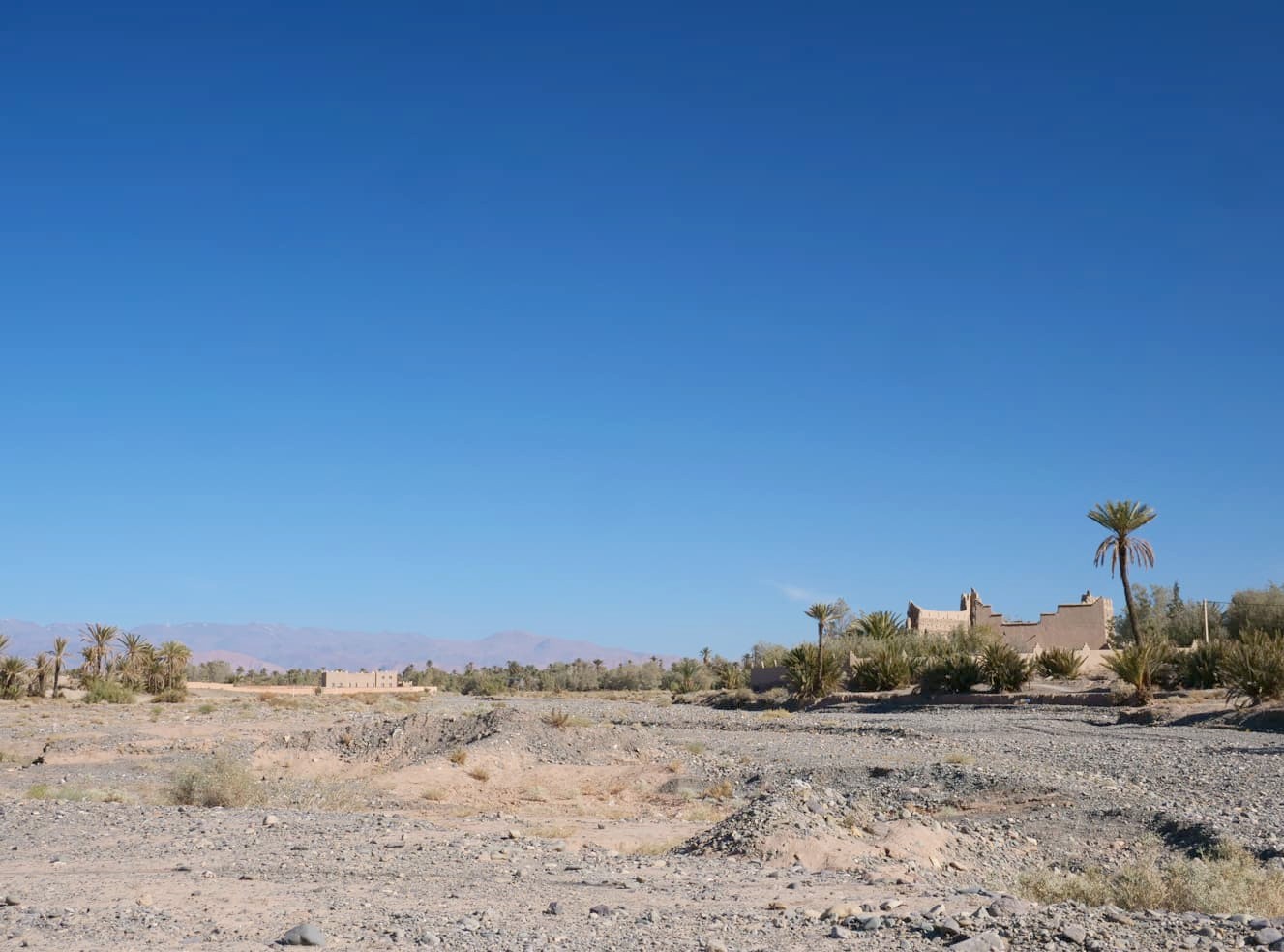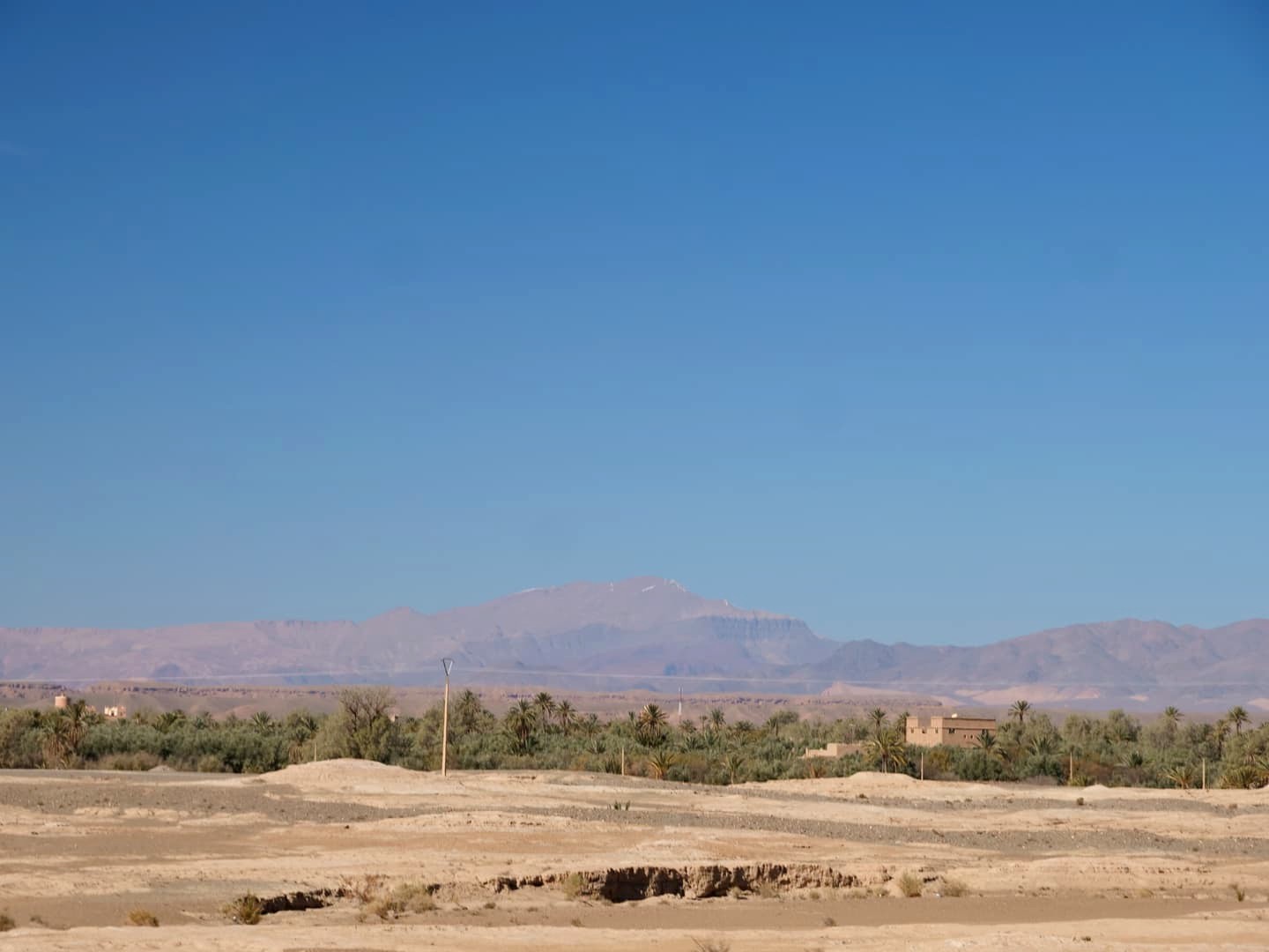 Après une longue route à travers les montagnes de l’Atlas depuis Marrakech (mais quelles vues !), nous avons l’impression de voir un mirage en débarquant à Skoura. Grand ciel bleu hivernal, palmiers à perte de vue, habitations en pisé qui se fondent dans le décor… On est tout de suite mis dans l’ambiance de ce que la semaine de voyage à venir nous réservait !