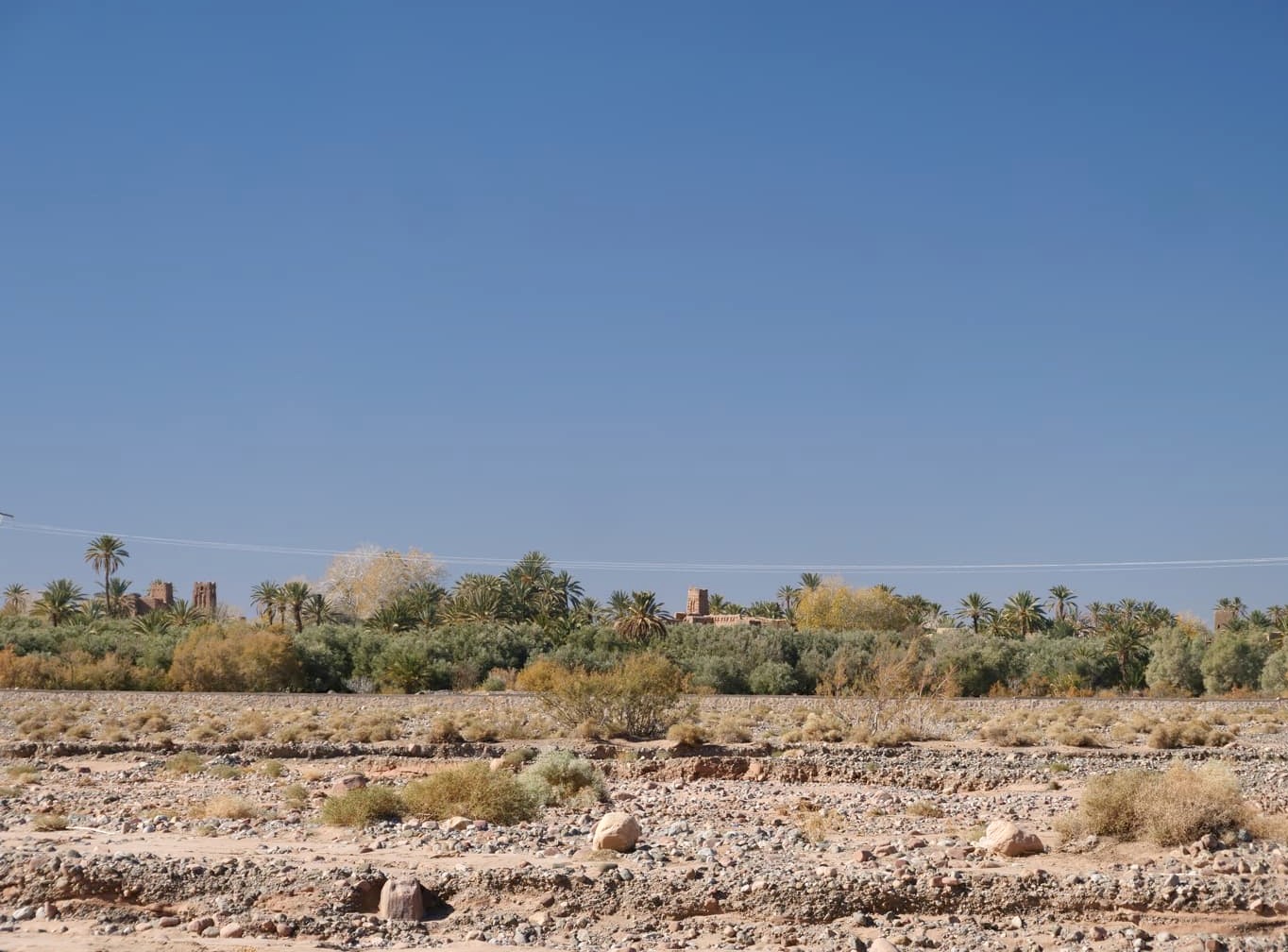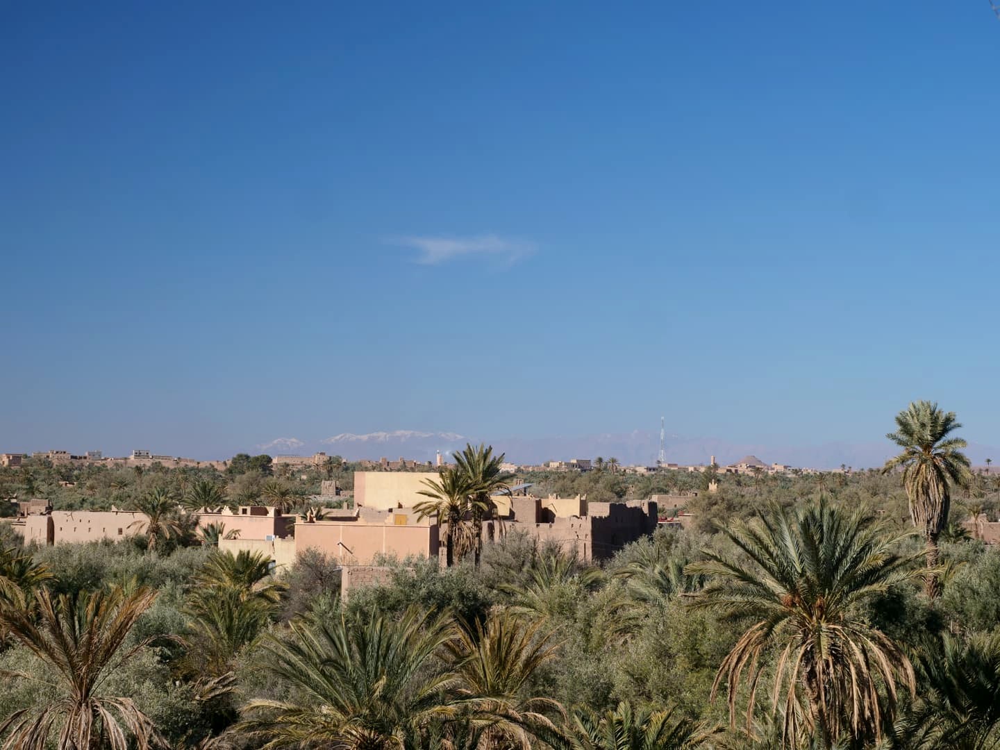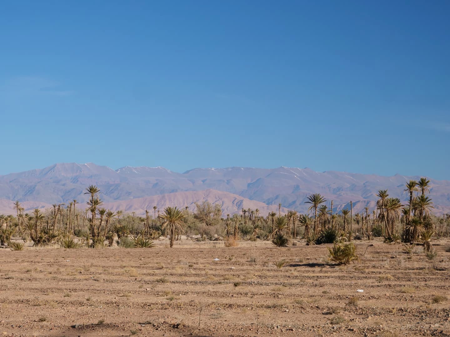 Après une longue route à travers les montagnes de l’Atlas depuis Marrakech (mais quelles vues !), nous avons l’impression de voir un mirage en débarquant à Skoura. Grand ciel bleu hivernal, palmiers à perte de vue, habitations en pisé qui se fondent dans le décor… On est tout de suite mis dans l’ambiance de ce que la semaine de voyage à venir nous réservait !