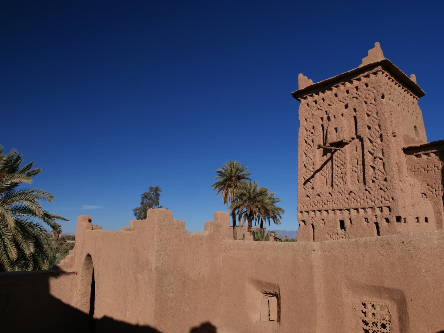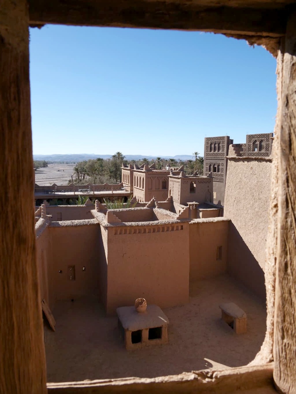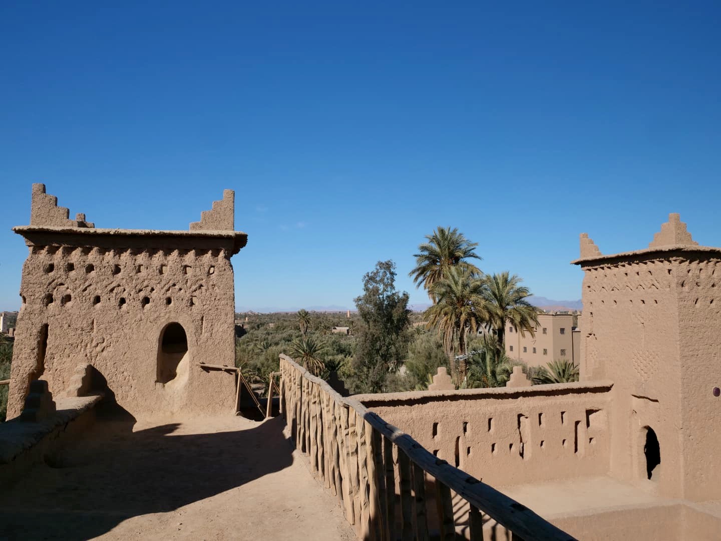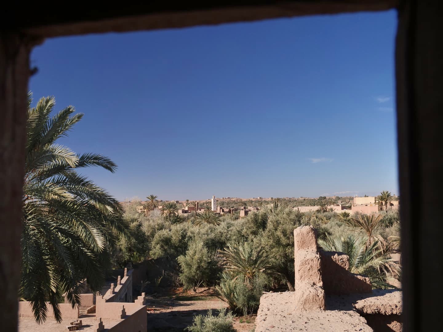 Un peu déçu de s’être fait « avoir », mais vu les tarifs assez abordables, on a finalement décidé de repayer pour la partie principale, qui a un gros avantage (en plus d’être bien plus grande), c’est qu’elle offre des vues magnifiques sur la palmeraie de Skoura depuis le sommet de la partie principale du bâtiment. Et juste pour ça, ça valait le coup !