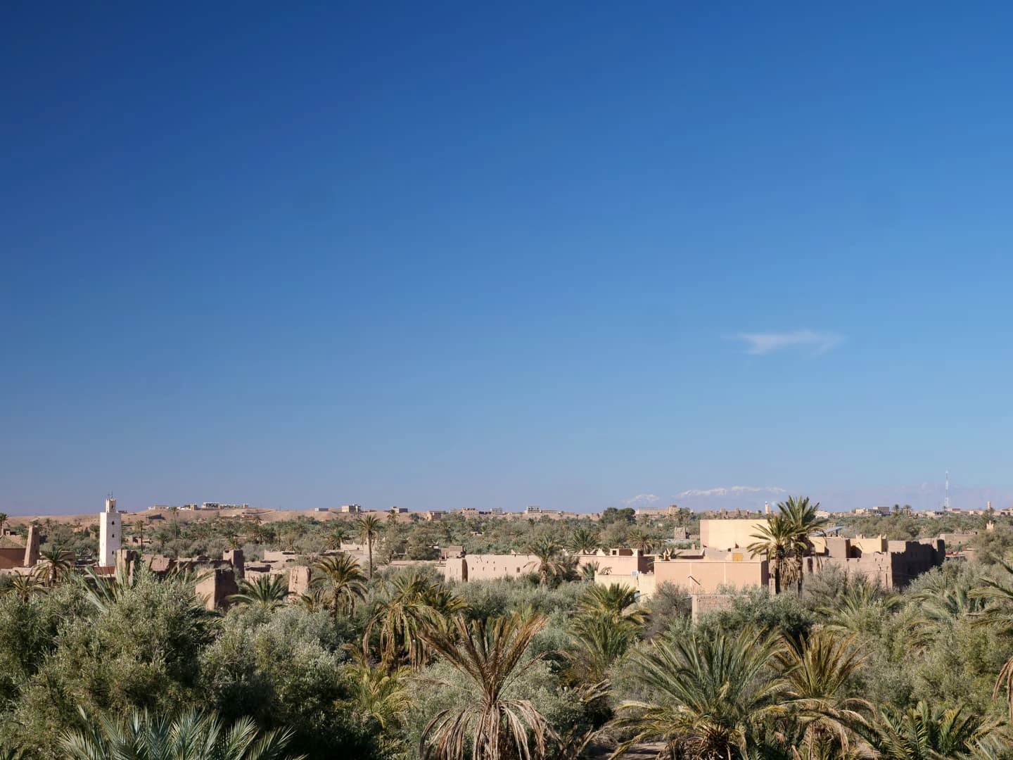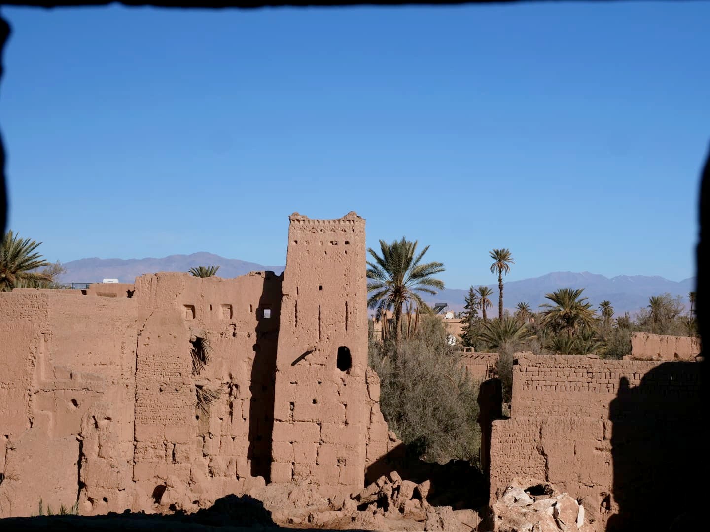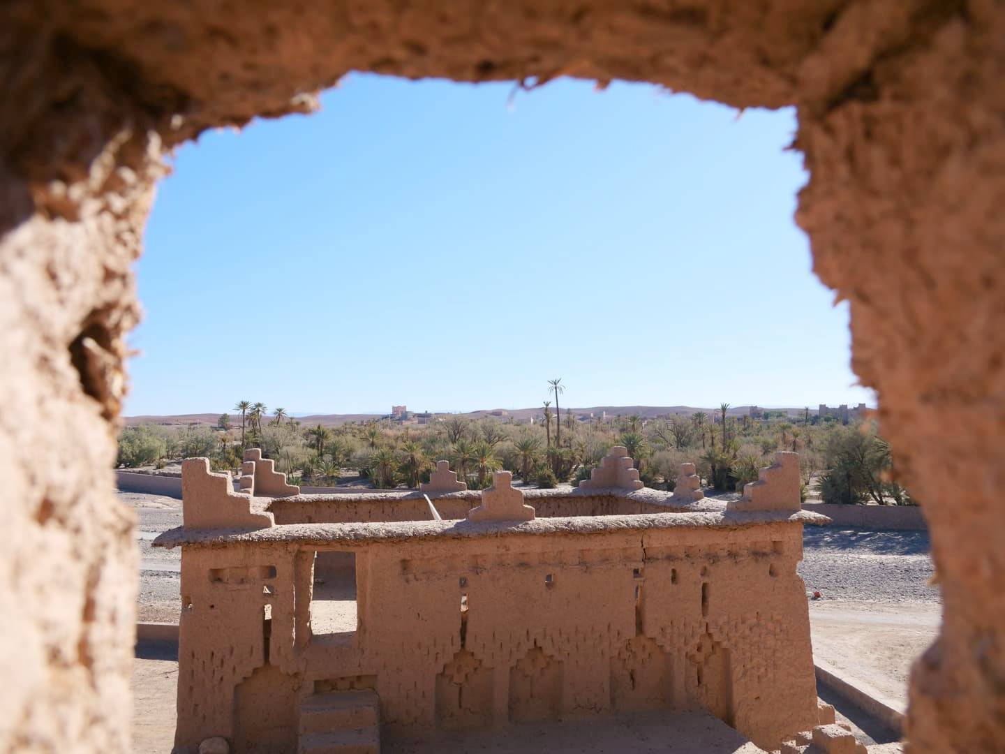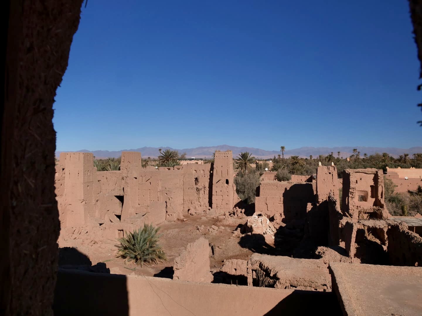 Un peu déçu de s’être fait « avoir », mais vu les tarifs assez abordables, on a finalement décidé de repayer pour la partie principale, qui a un gros avantage (en plus d’être bien plus grande), c’est qu’elle offre des vues magnifiques sur la palmeraie de Skoura depuis le sommet de la partie principale du bâtiment. Et juste pour ça, ça valait le coup !