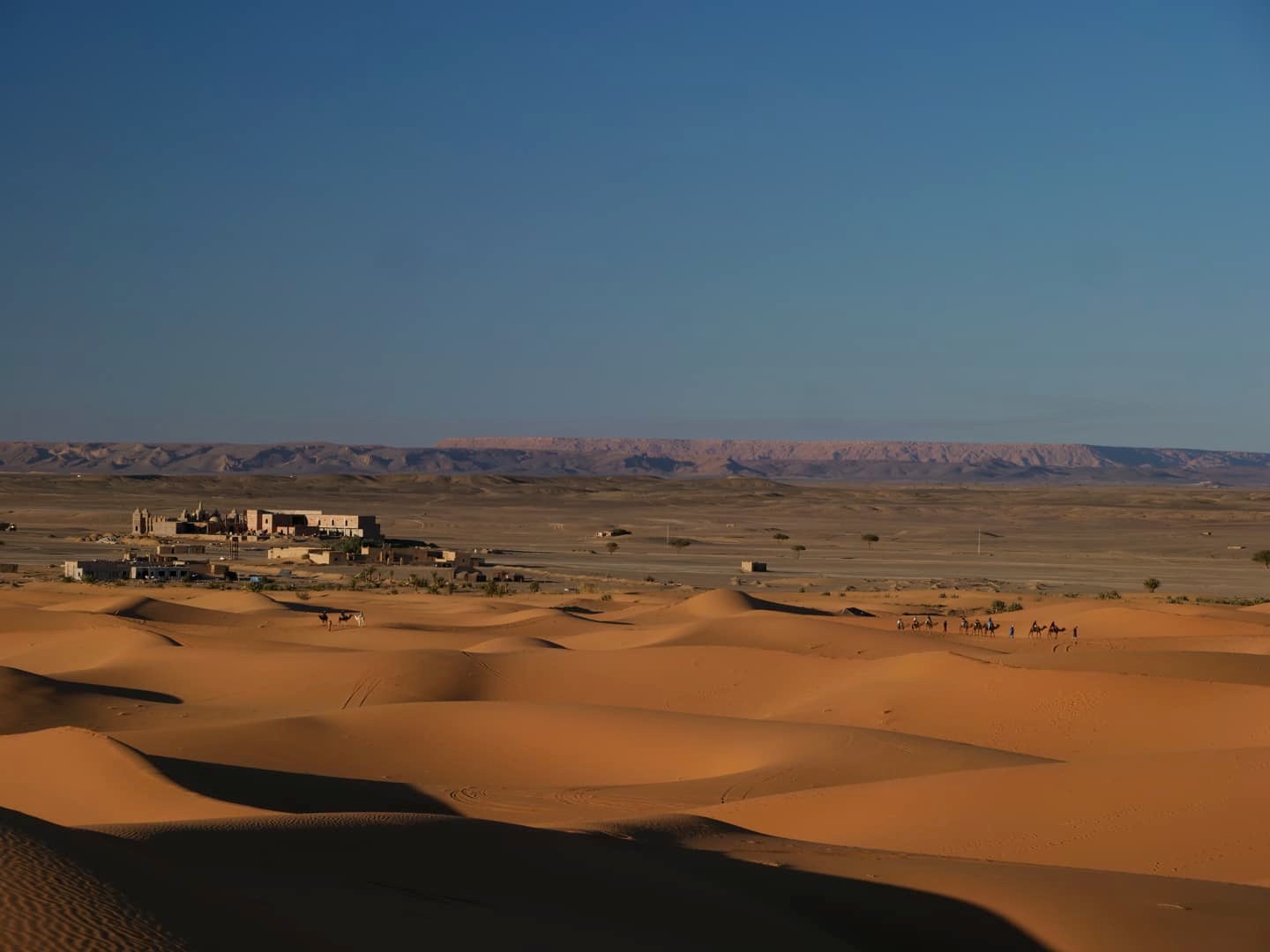 Si vous cherchez l’expérience authentique du désert, ce n’est probablement pas à Merzouga qu’il faut vous rendre, ou alors il vous faudra bien chercher. En effet, les campements « dans le désert » pullulent à Merzouga, certains (contrairement à ce que leurs photos peuvent faire croire) se trouvant à quelques centaines de mètres seulement de la route principale ! Et beaucoup de camps, même si plus éloignés, seront proches les uns des autres. Bien sûr, il existe des exceptions, et pour avoir à nouveau épluché les offres sur Booking, il faut vraiment bien lire les commentaires pour être sûr de pour quoi vous « signez ».