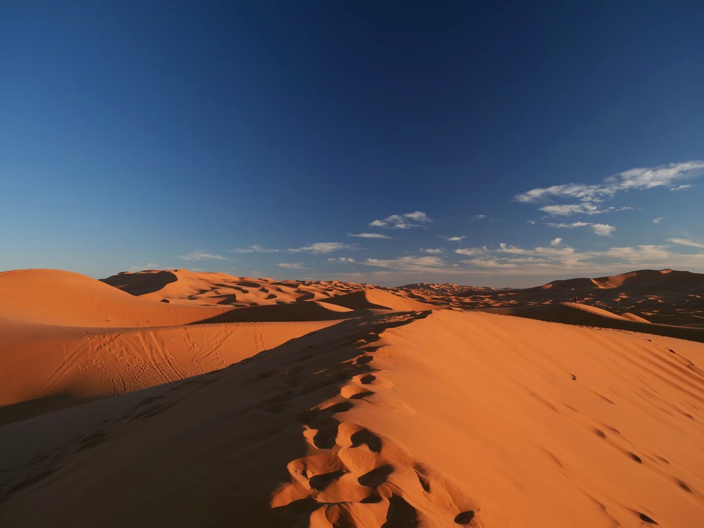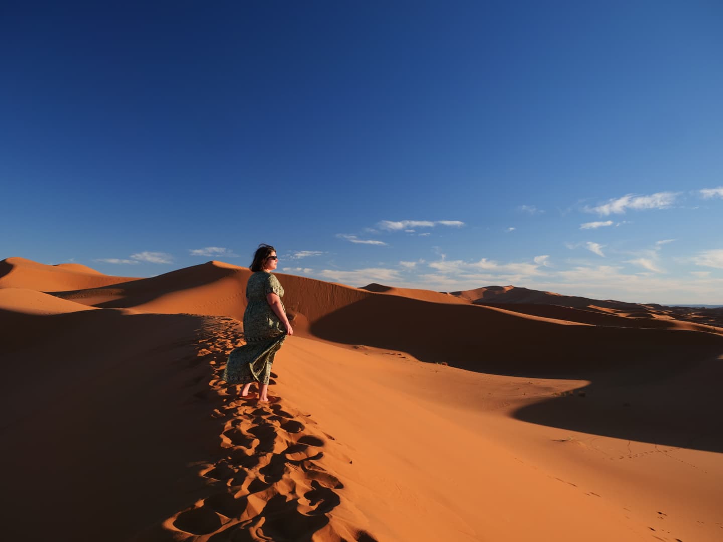 Balade dans les dunes au coucher du soleil à Merzouga