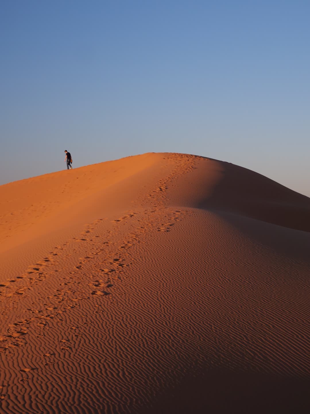 On voulait au départ faire juste une petite balade, mais à chaque montée de dune, le paysage devenait de plus en plus beau, et le côté « seuls au monde » nous a tellement charmé que nous sommes finalement partis plus loin que prévu ! Je garde un souvenir mémorable de cette balade. J’ai déjà eu la chance de voir des dunes splendides dans d’autres régions du monde, mais celles-ci restent parmi les plus belles que j’ai pu voir.