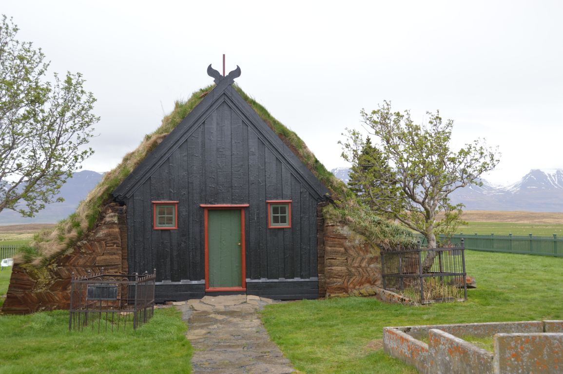 Après Blonduos, la route nous mène à Vidimyri, où se trouve une église au toit en tourbe (« turf church ») datant de 1834 (mais construite à l’emplacement d’une église du 12ème) et considérée comme un des plus beaux exemples de cette architecture islandaise traditionnelle.