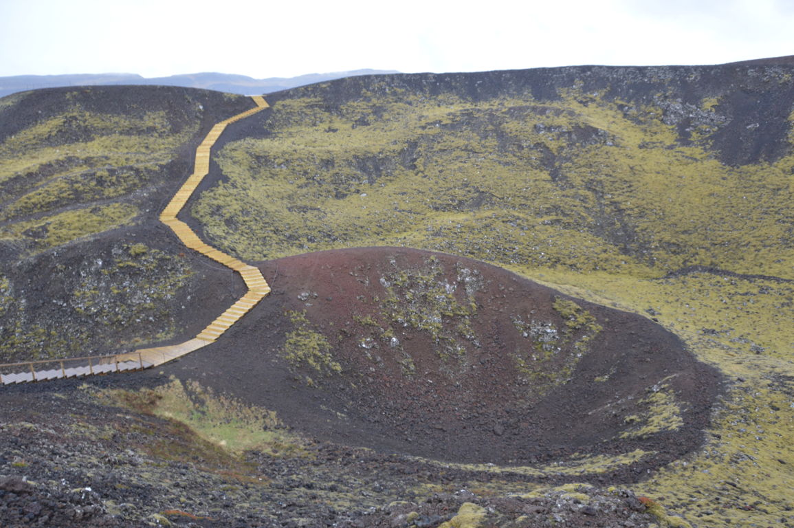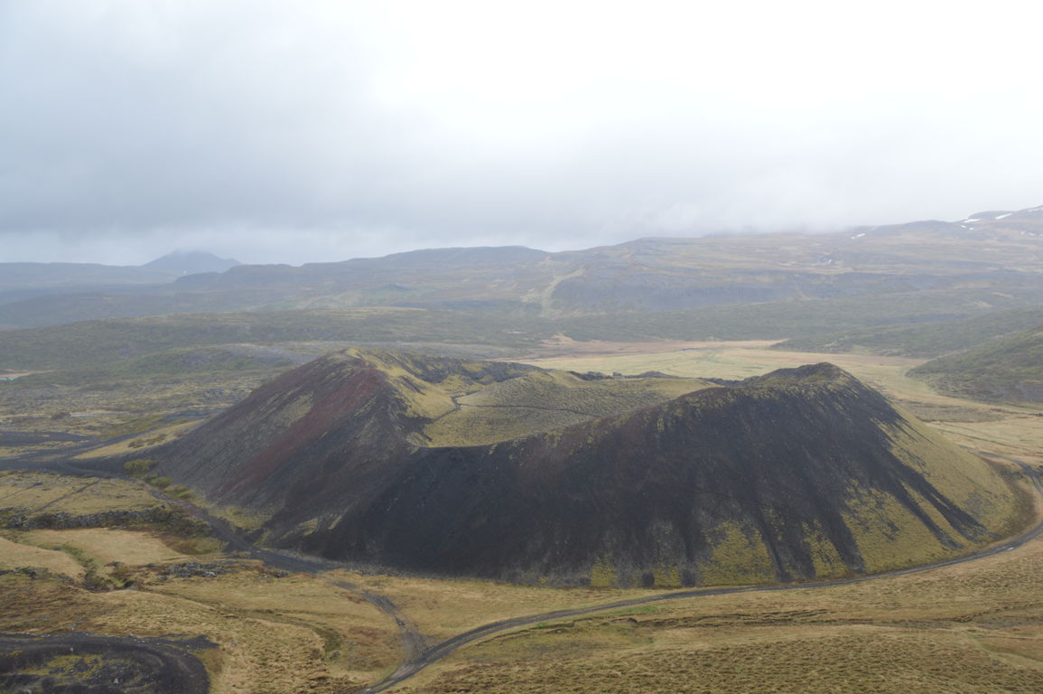 Le cratère a été formé par une éruption qui s’est produite il y 2000 à 3000 ans. Après 10 petites minutes à gravir les marches installées pour faciliter la vie des touristes, nous y sommes: le cratère est impressionnant, et encore plus la vue sur la vallée de Nordurardalur depuis le sommet.