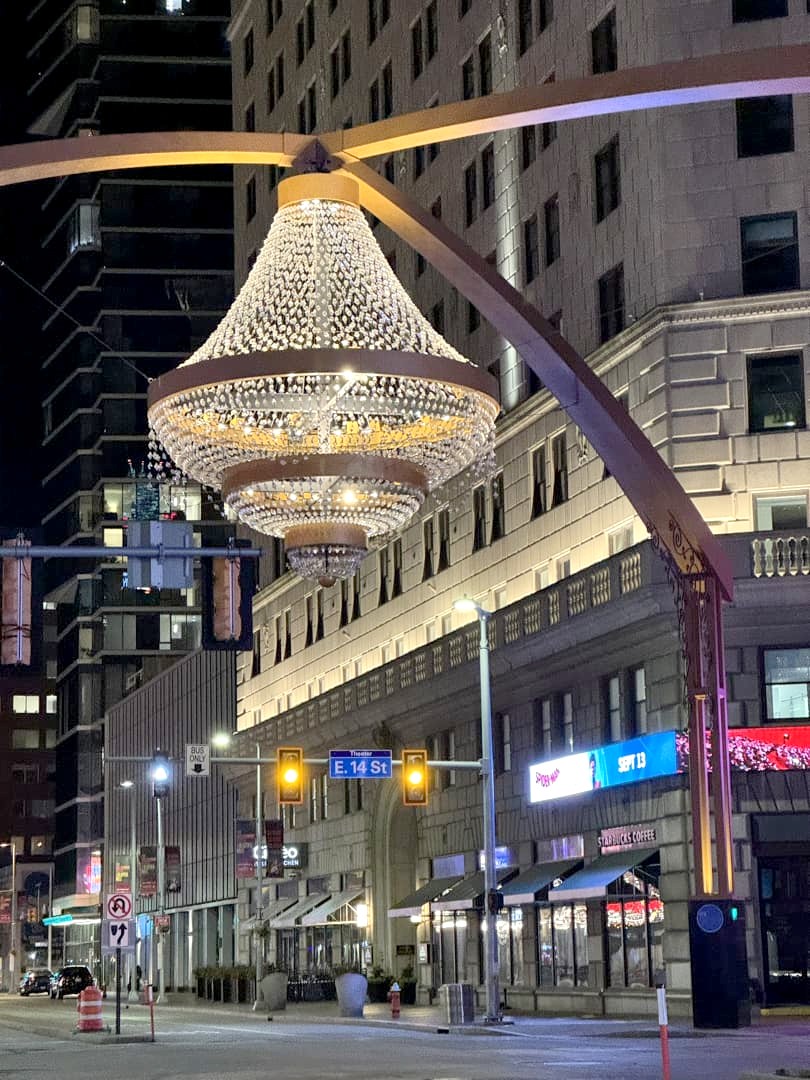 Si vous avez le temps, poursuivez jusqu’au Playhouse Square, où vous pourrez admirer le… plus grand chandelier extérieur des USA ! Celui-ci marque le plus grand centre d’arts du spectacle en dehors de New York.