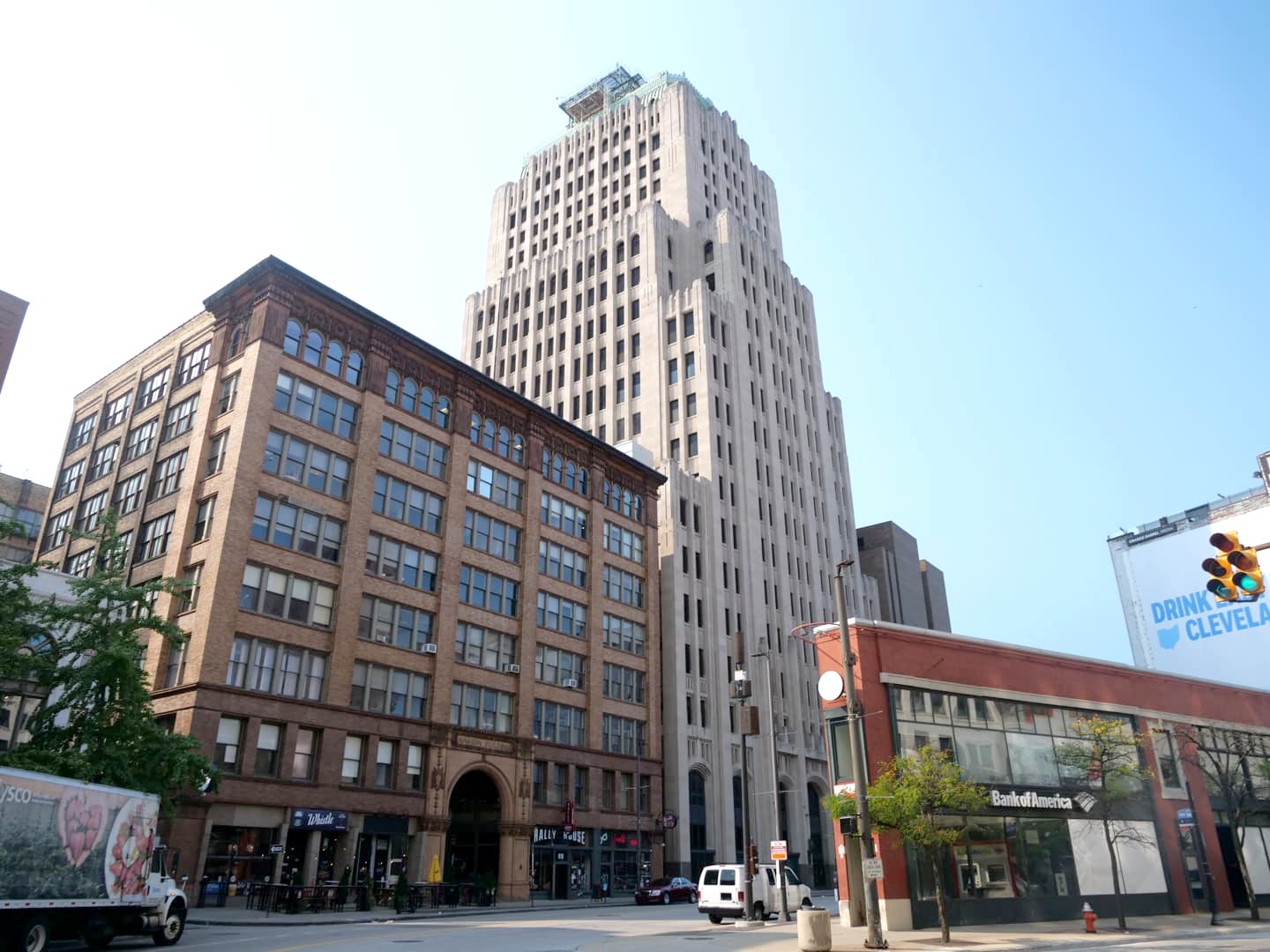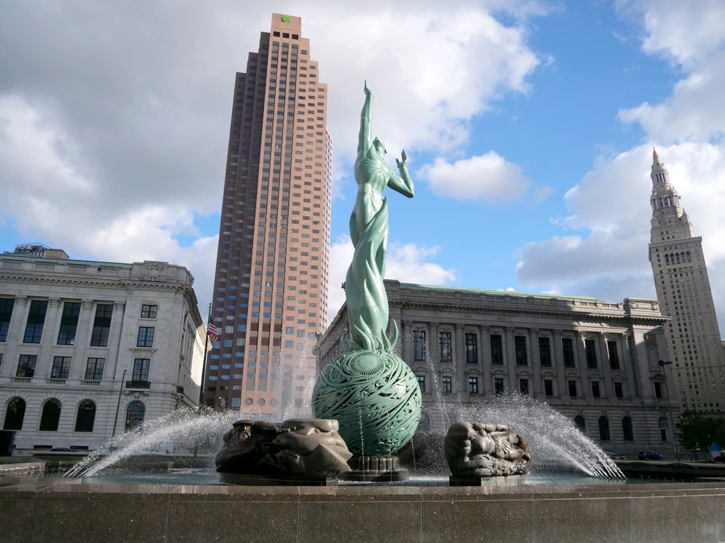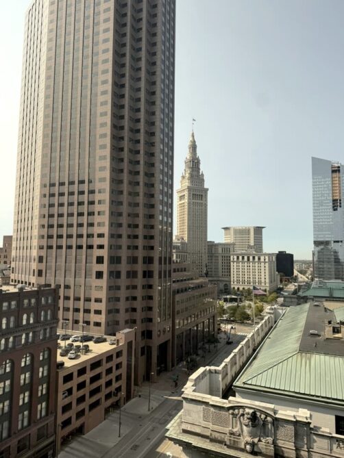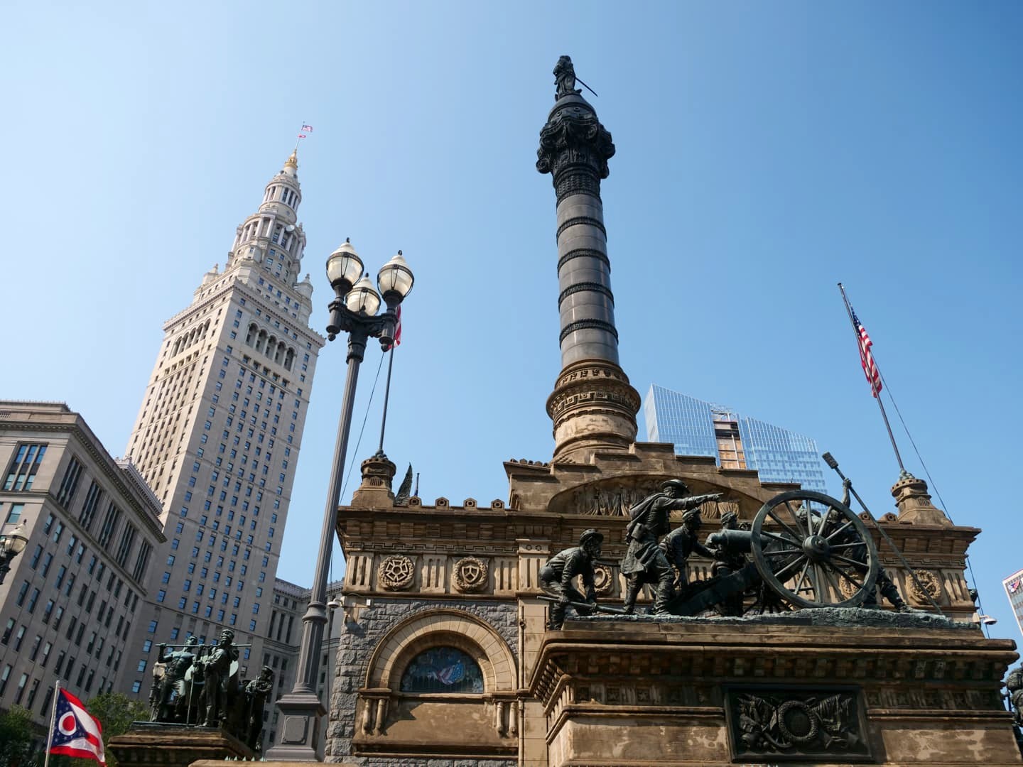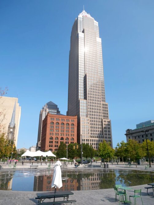 Le coeur historique de la ville, c’est l’animée Public Square, une grande place classée au National Register of Historic Places et entourée par les quatre plus hauts gratte-ciel de Cleveland, dont l’historique et très photogénique Terminal Tower, qui fut d’ailleurs le second plus haut bâtiment au monde à sa construction en 1927.