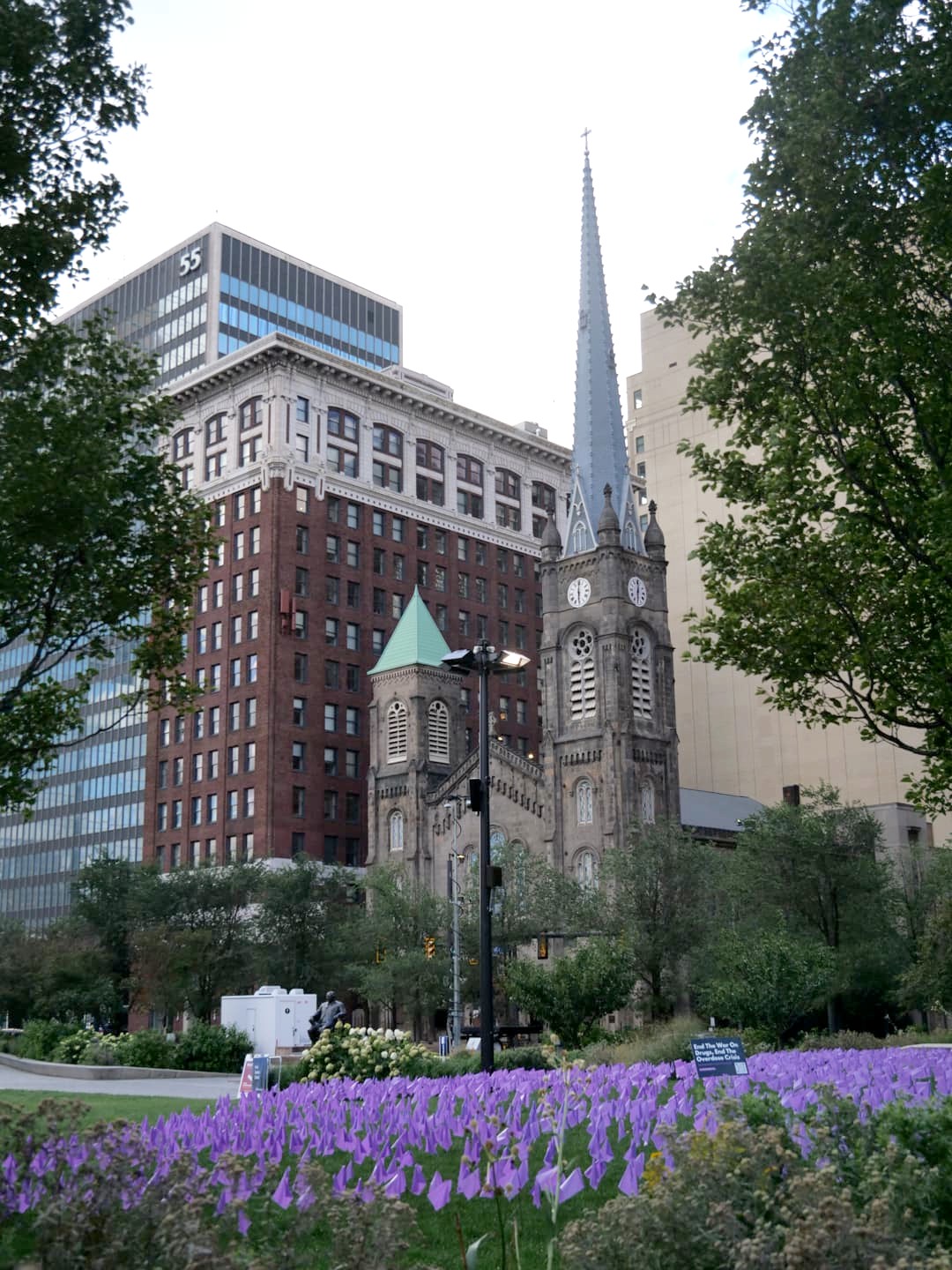 Derrière la bibliothèque, le Drury Plaza Cleveland Downtown, autre hôtel historique de Cleveland, vaut également un coup d’oeil même si vous n’y logez pas. Face à lui, la Fountain of Eternal Life offre de chouettes opportunités photos avec les gratte-ciel en arrière-plan !