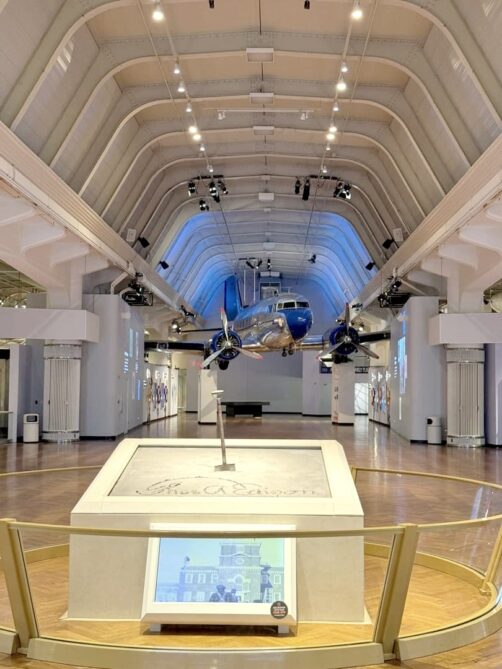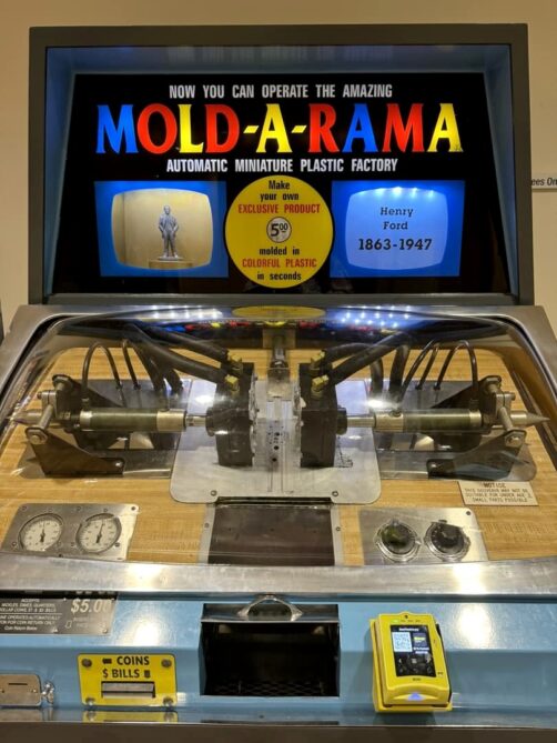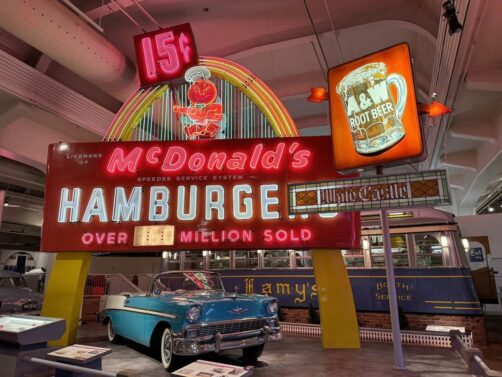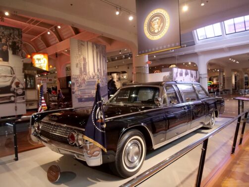 Juste à côté, nous finissons la visite au Ford Museum of American Innovation, un musée plus « classique », dédié aux innovations américaines au sens large. Si l’on y retrouve plein de vieilles voiture, les collections de ce grand musée vont donc bien au delà de cela : les sujets abordés vont de la révolution américaine à la révolution industrielle, en passant par les maths, l’aviation, le mobilier, et j’en passe. On peut dire que c’est plutôt éclectique ! Parmi les voitures incontournables, on peut notamment voir la première gagnante de la course Indy 500, la seconde voiture à avoir traversé les USA, la Lincoln où fut assassiné Kennedy, ou encore le bus dans lequel s’est révoltée Rosa Parks. Il faut compter au moins une demi-journée pour faire le tour de tout (nous avions prévu 2-3 heures, ça n’a pas été suffisant pour tout voir).