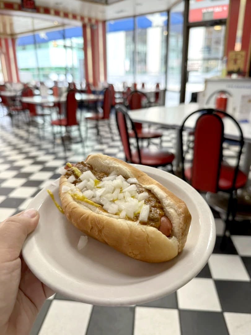 En dehors des pizzas, Detroit est également connue pour ses hot dogs. Les deux institutions de la ville se trouvent littéralement côte à côte : il s’agit de American Coney Island et Lafayette Coney Island, lancées par… deux frères ! La particularité du « Coney Island », le hot dog « Detroit Style », c’est sa sauce chili, dont la recette est gardée secrète. Je n’ai goûté que le American Coney Island (pour cause d’estomac trop rempli !) mais je n’ai en tout cas pas trouvé ça extraordinaire. En tout cas, c’est un sujet qui passionne les locaux puisque chacun a son préféré !