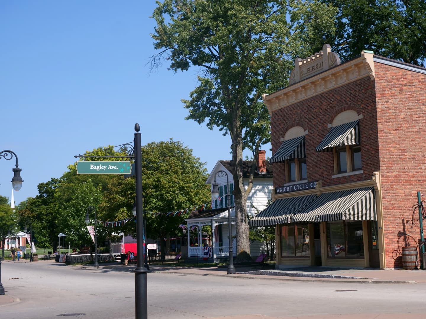 Le Greenfield Village est un « musée à ciel ouvert » unique au monde, construit par Henry Ford en 1929. Dans ce « village », il a regroupé des maisons de différentes régions et époques de l’histoire américaine dans une visée pédagogique. On y retrouve des constructions liées à sa vie, comme sa maison d’enfance ou même la maison de son prof préféré, mais aussi d’autres lieux qui ont marqué l’histoire des USA et du monde, comme la maison d’enfance et l’atelier de bicyclettes des frères Wright, la maison d’Heinz (des sauces), de Webster (des dictionnaires), une « courthouse » où a travaillé Abraham Lincoln, un laboratoire de Thomas Edison, et bien d’autres. La plupart des constructions sont d’origine : les bâtiments ont été déplacés ici !