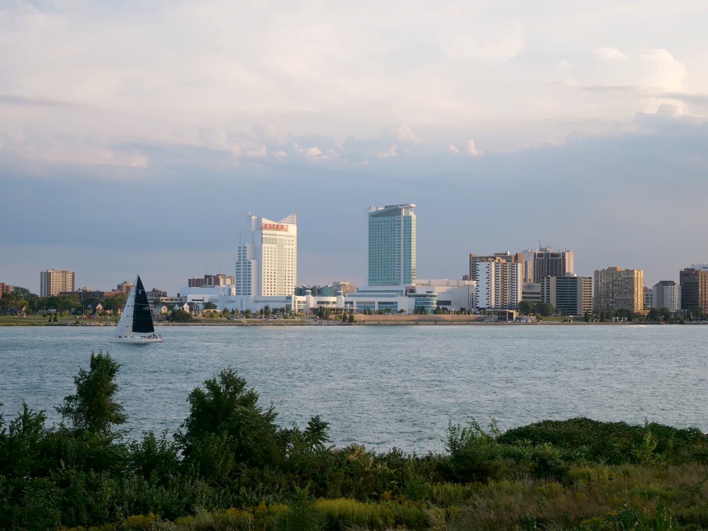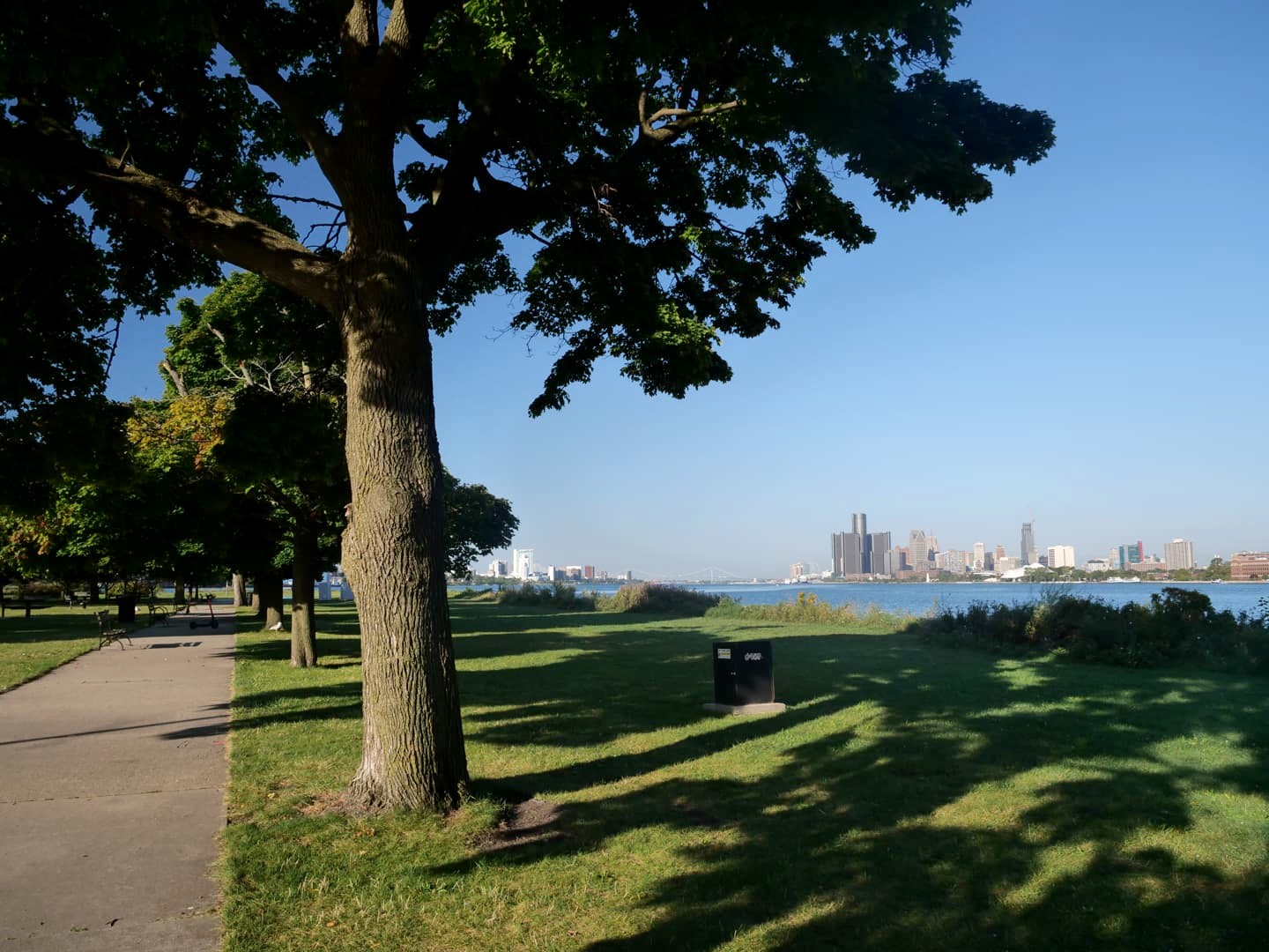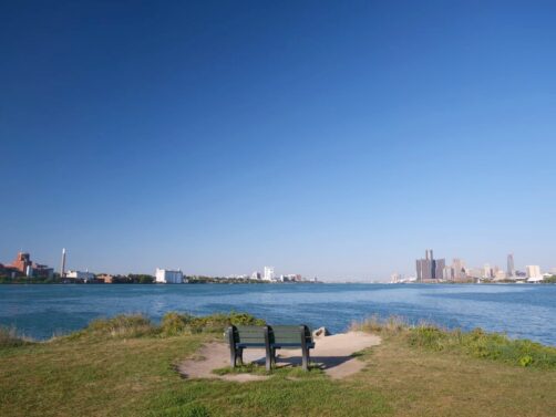 Au milieu de la rivière Detroit, près de l’embouchure du Lac Saint Clair, se trouve l’île de Belle Isle. Coincé entre le Canada et les USA, c’est le plus grand parc de Detroit. Je vous conseille d’y aller au moins pour profiter de la belle vue sur la skyline de Detroit d’un côté, et sur Windsor au Canada de l’autre côté de la rivière. Le meilleur spot est Sunset Point. C’est le matin qu’il faut y aller si vous ne voulez pas avoir la vue à contre-jour (mais j’imagine que le coucher de soleil doit être très sympa aussi !).