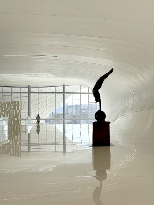 Pour en apprendre plus sur l’histoire et la culture de l’Azerbaïdjan, direction ensuite le musée Heydar Aliyev. On doit cette construction ultra-moderne à la célèbre architecte Zaha Hadid, dont on reconnaît bien les courbes signature. Pour ce bâtiment, elle se serait inspirée de la fameuse robe blanche de Marilyn Monroe, soulevée par le souffle du métro. Il faut en faire le tour pour profiter de ce chef d’oeuvre d’architecture postmoderne sous tous ses angles.