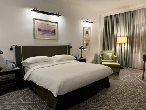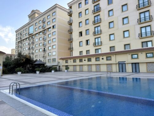 J’ai séjourné durant l’ensemble de mon séjour en Azerbaïdjan au Hyatt Regency Baku, un très confortable hôtel 5 étoiles situé à 10-15 minutes en voiture de la Vieille Ville, dans un quartier calme. Le gros avantage de cet hôtel est l’accès qu’il offre à ses clients à une gigantesque salle de sport dans le bâtiment voisin, avec une piscine extérieure, une piscine intérieure, sauna, hammam… Sur place, vous trouverez aussi un bar et un restaurant italien, qui propose tout de même quelques plats plus locaux, comme une bonne truite saumonée locale, à accompagner d’un verre de vin d’Azerbaïdjan.