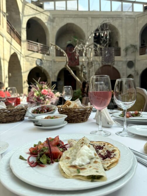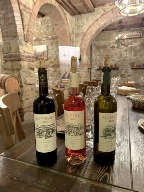 C’est également dans les environs de Shamakhi que nous en avons découvert plus sur les vins d’Azerbaïdjan. En effet, c’est ici que s’est installé le vignoble de Meysari, le premier vignoble biologique d’Azerbaïdjan. Cette populaire destination oeno-touristique possède un restaurant (Abqora Restaurant), où l’on peut déguster une cuisine locale (en partie préparée avec leurs vins !), avec des vues bucoliques sur les vignes et les montagnes.
