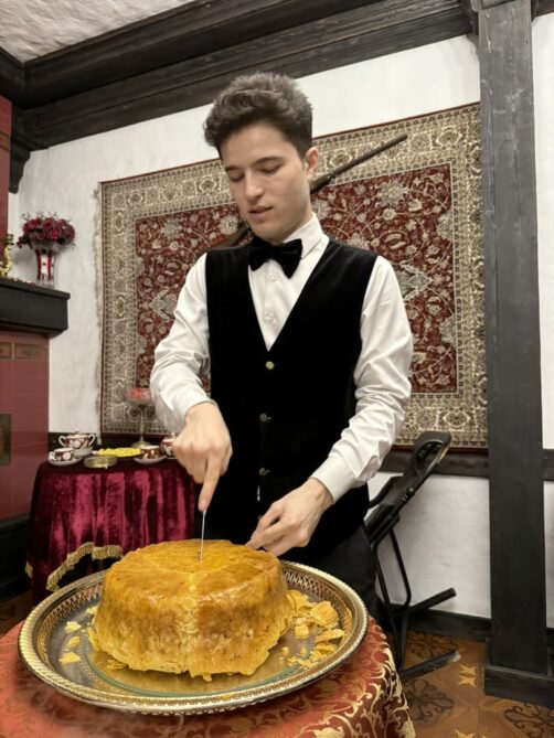 Il n’y a sans doute pas meilleur endroit pour goûter à la grande spécialité culinaire du pays, le plov, festin de toutes les fêtes, que ce restaurant-musée. Un vrai labyrinthe, avec de multiples salles, une décoration rétro, une ambiance musicale traditionnelle, et même des pièces privées pour les groupes. Riz pilaf, agneau, fruits secs, châtaignes… le tout bien beurré et entouré d’une pâte bien croustillante. C’était un délice, encore plus accompagné d’un vin de Savalan, l’un des meilleurs vignobles du pays.