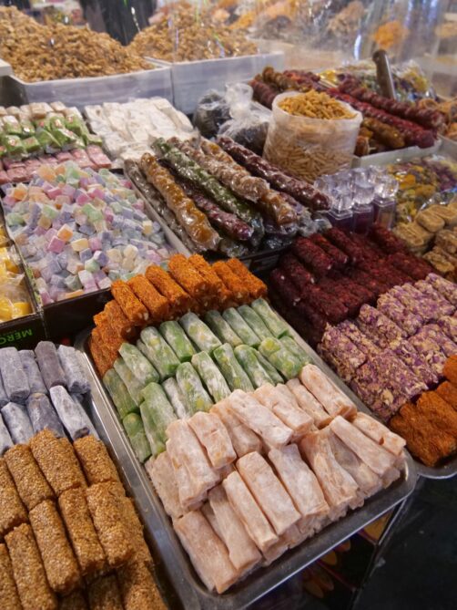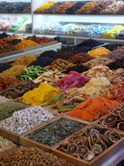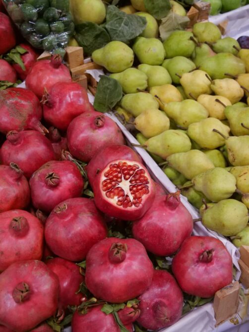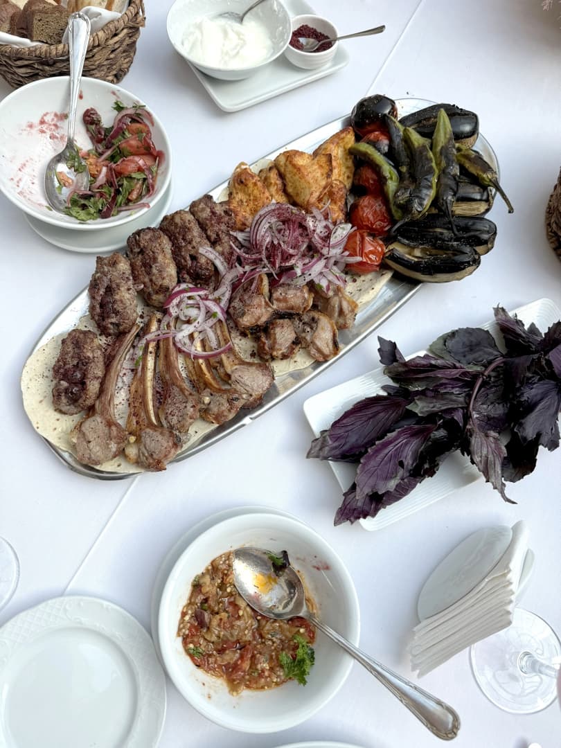 En plus de ses vins, l’Azerbaïdjan possède aussi une très riche gastronomique que j’avais très hâte de découvrir. La cuisine azerbaïdjanaise pourrait être décrite comme une cuisine orientale, mais avec une influence méditerranéenne. La diversité géographique et climatique du pays permet de pouvoir profiter d’une grande variété de produits locaux, des poissons (et caviar !) de la mer Caspienne, aux riches plantations de fruits (la grenade en tête – on la retrouve vraiment partout), en passant par d’autres productions réputées du pays, comme le safran ou le thé.