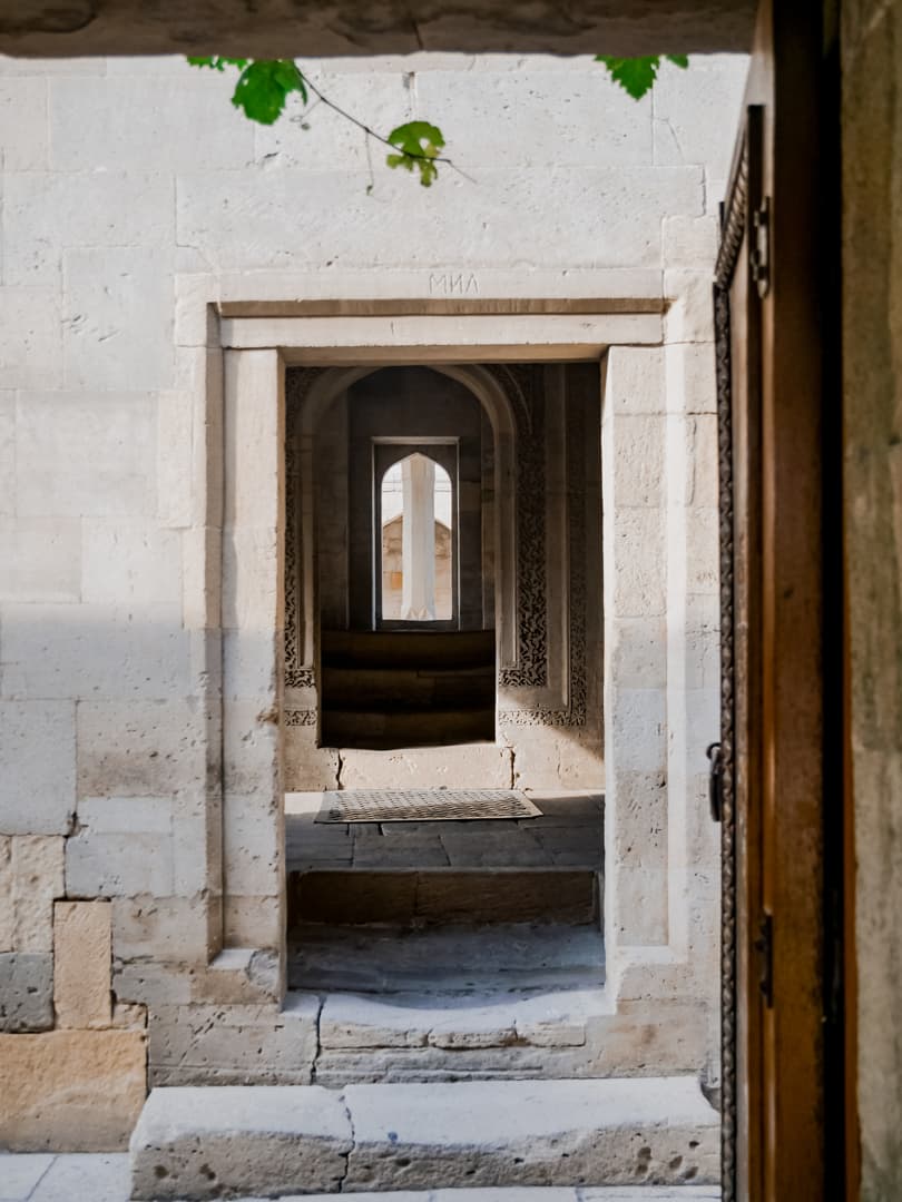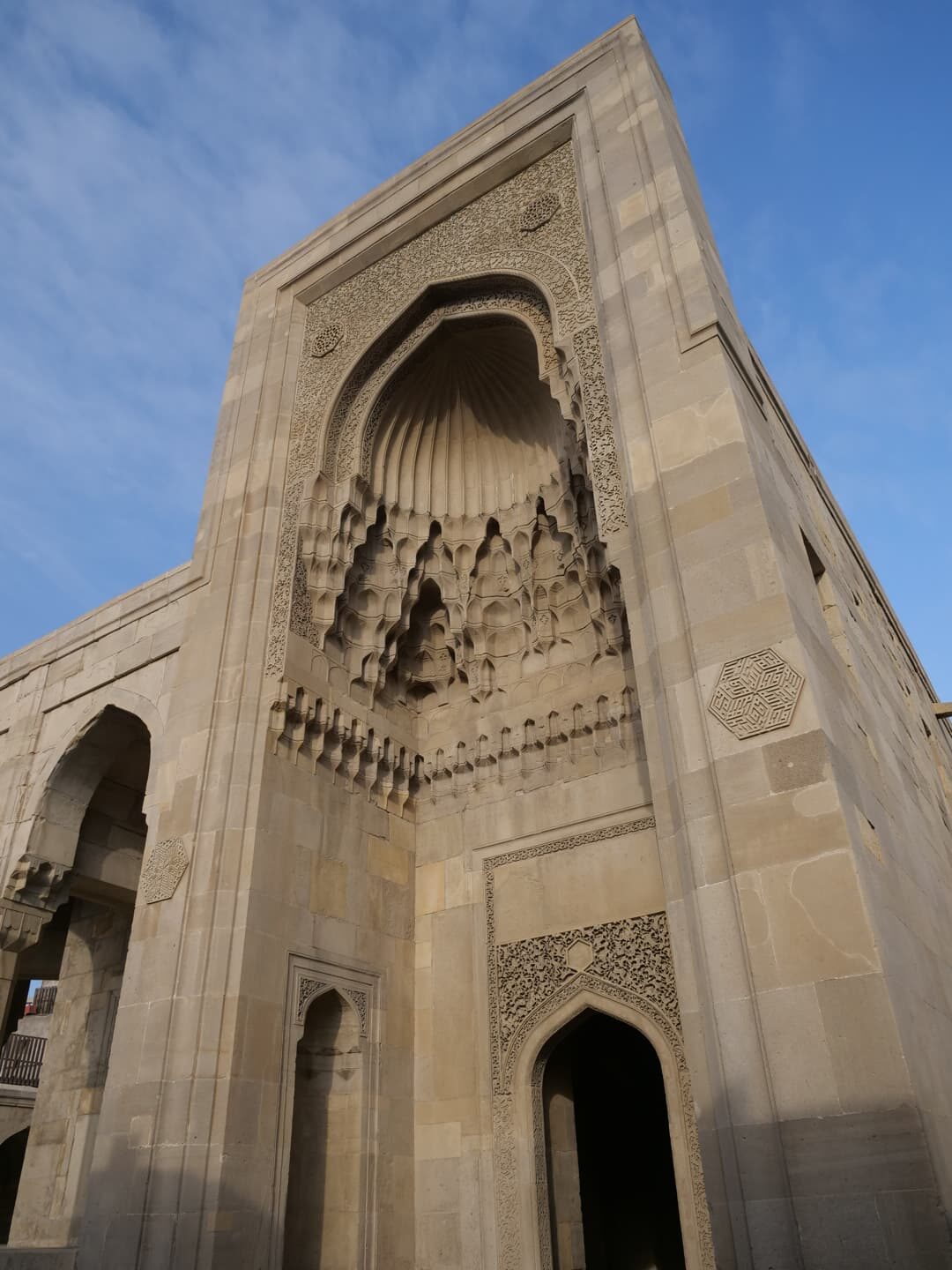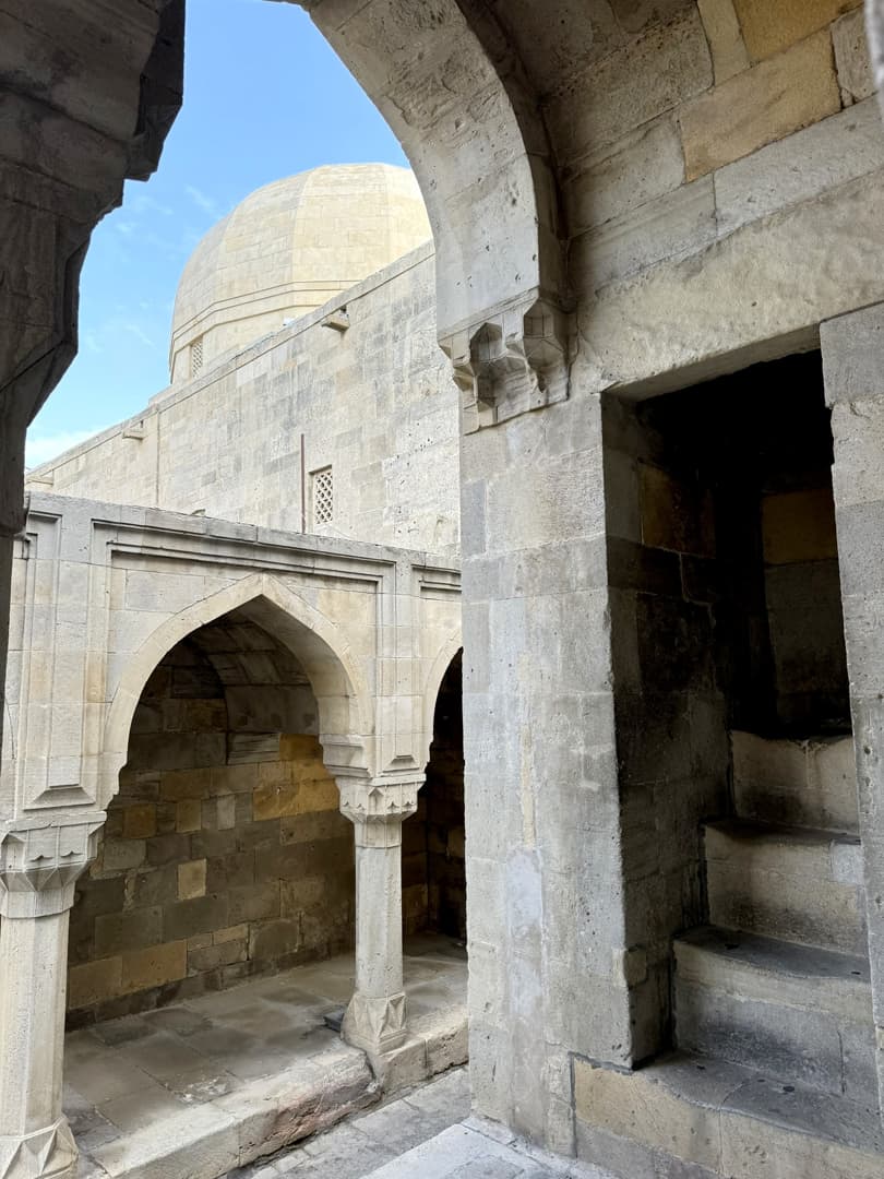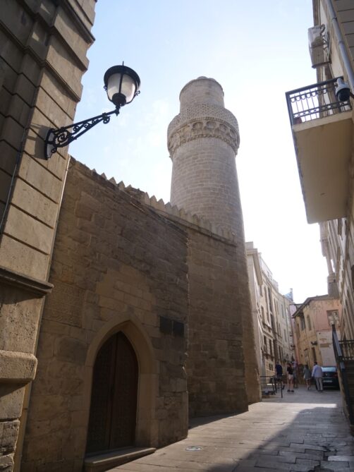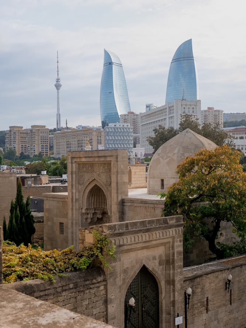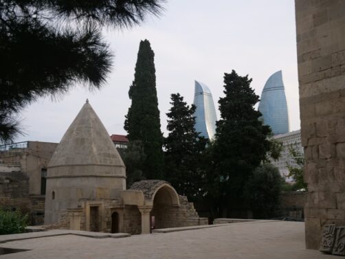 Le Palais des Shirvanshahs (Şirvanşahlar Sarayı), qui fait lui aussi partie de l’ensemble classé à l’UNESCO, date quant à lui du 15ème siècle, période à laquelle Baku était la capitale de l’état de Chirvan. La visite, assez courte, permet notamment de découvrir l’ancienne salle du trône et une ancienne mosquée. Depuis l’entrée du palais, la vue tout en contraste avec le palais et la vieille ville en premier plan, les bâtiments de l’époque soviétique en second plan, et les toutes nouvelles Flame Towers dominant la ville, est plutôt saisissante.