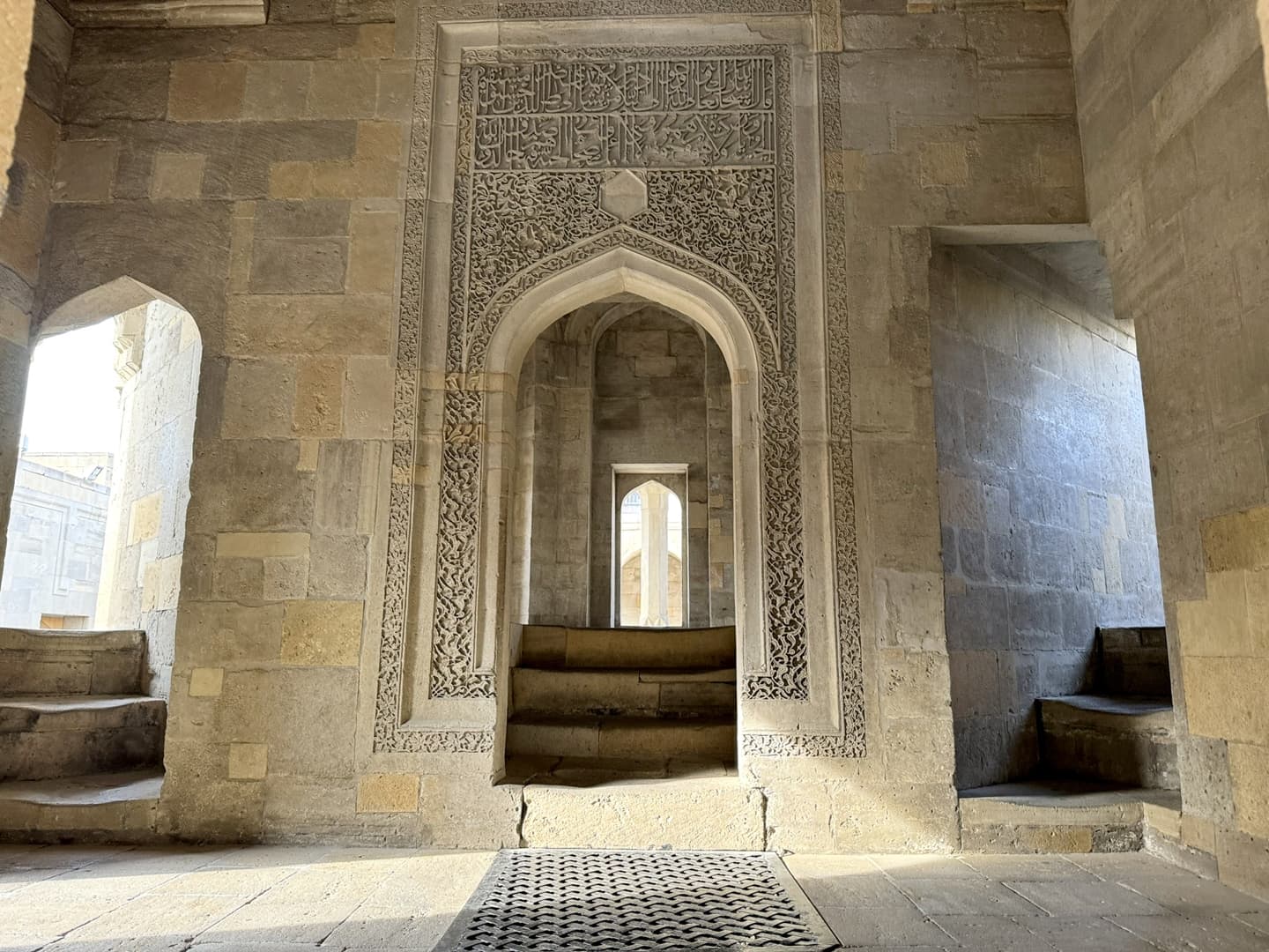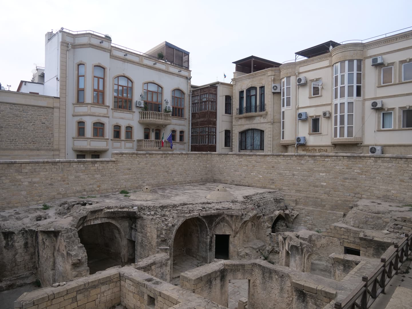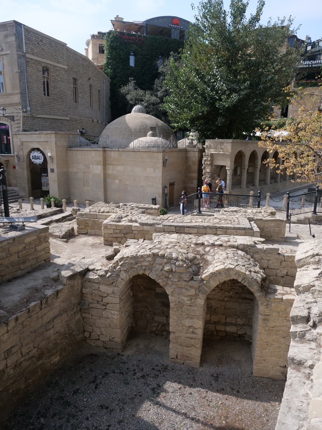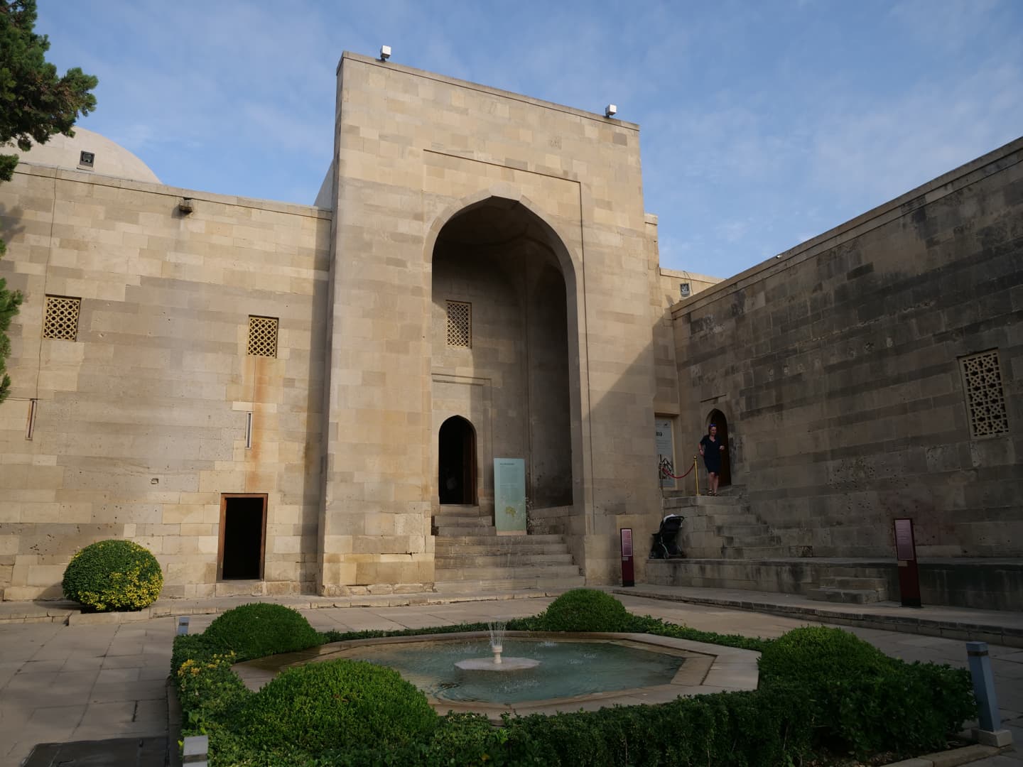 Le Palais des Shirvanshahs (Şirvanşahlar Sarayı), qui fait lui aussi partie de l’ensemble classé à l’UNESCO, date quant à lui du 15ème siècle, période à laquelle Baku était la capitale de l’état de Chirvan. La visite, assez courte, permet notamment de découvrir l’ancienne salle du trône et une ancienne mosquée. Depuis l’entrée du palais, la vue tout en contraste avec le palais et la vieille ville en premier plan, les bâtiments de l’époque soviétique en second plan, et les toutes nouvelles Flame Towers dominant la ville, est plutôt saisissante.